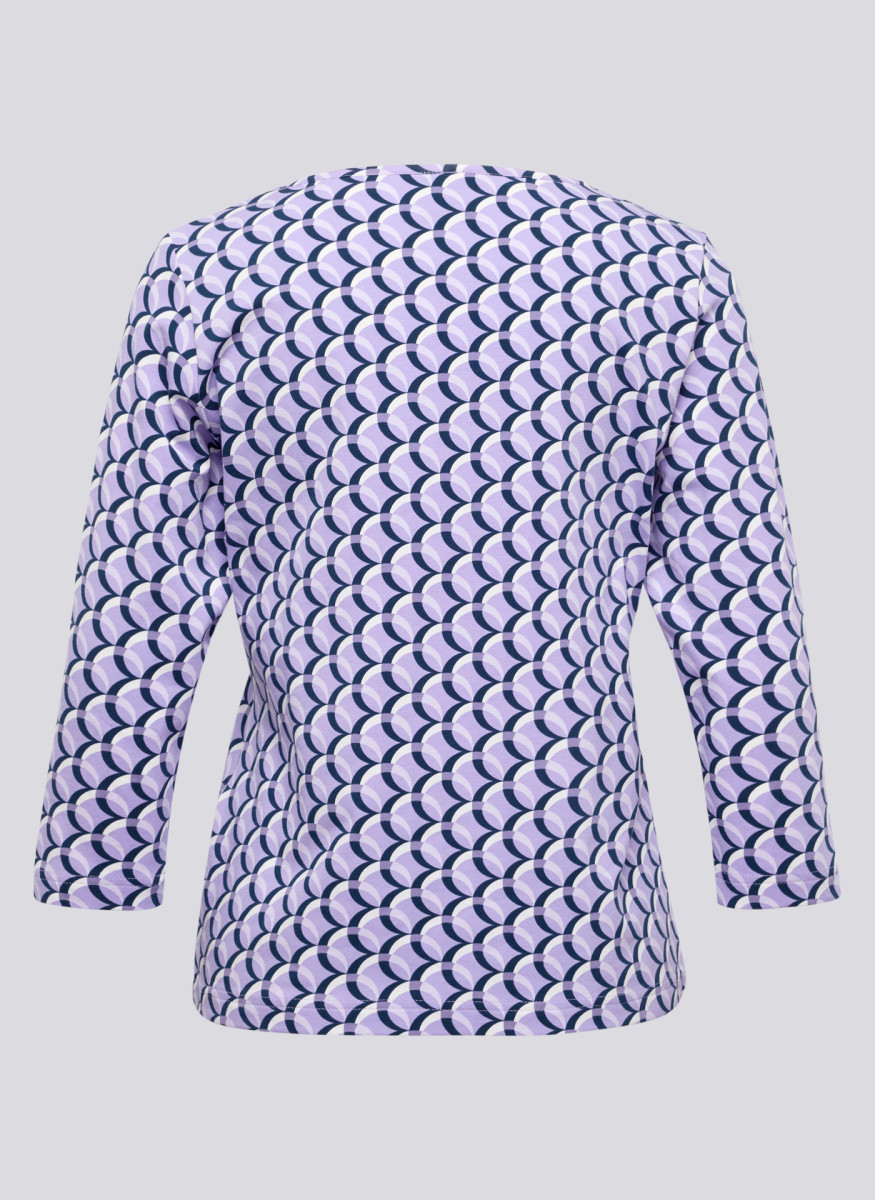 Das Shirt vereint florale Motive mit grafischen Elementen in vertikaler Anordnung und wird durch einen Rundhalsausschnitt mit schimmerndem Glitzergarn elegant akzentuiert. Die Passform ist leicht tailliert und die Ärmel sind schlicht sowie halblang, wodurch das Modell vielseitig kombinierbar für stilvolle Casual-Looks ist. Dezente Glitzerdetails und die weiche Jerseyqualität sorgen für einen femininen, angenehmen Tragekomfort.Lief.-Art-Nr: 56-114359