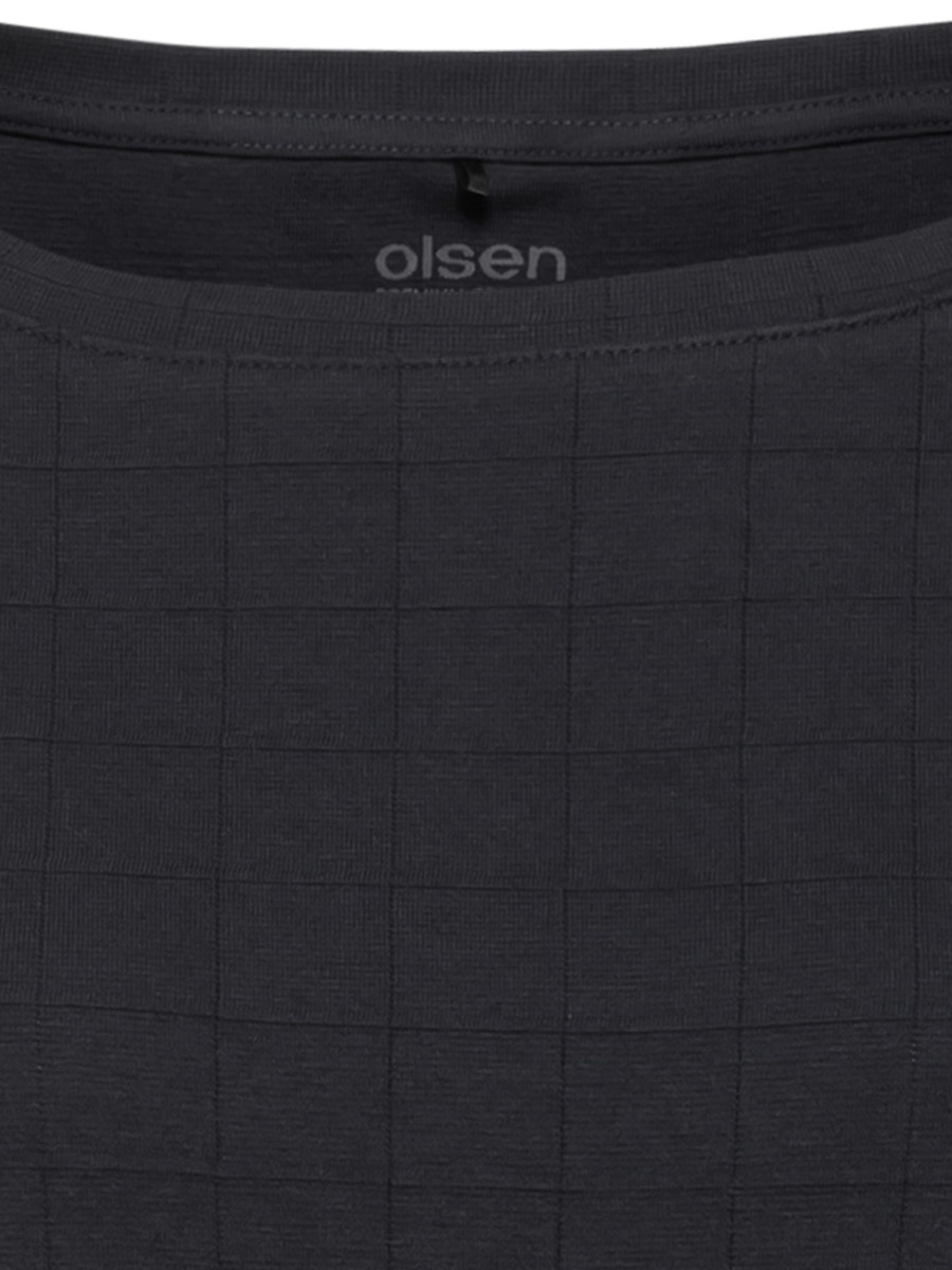 Dieses schöne Rundhalsshirt von Olsen zeigt ein schlichtes Karomuster und umspielt durch die gerade Olsen-Passform „Hannah“ locker die Figur. Gefertigt aus reiner Baumwolle liegt das Shirt weich auf der Haut auf.