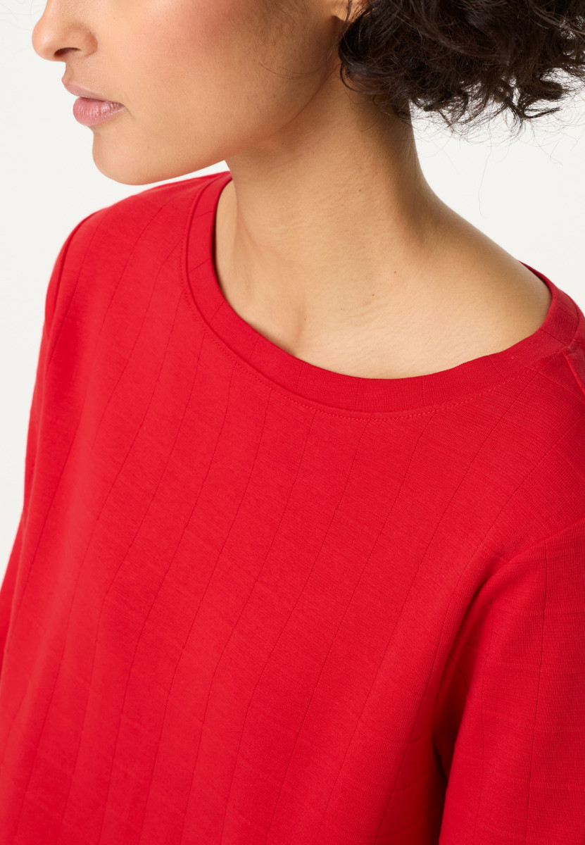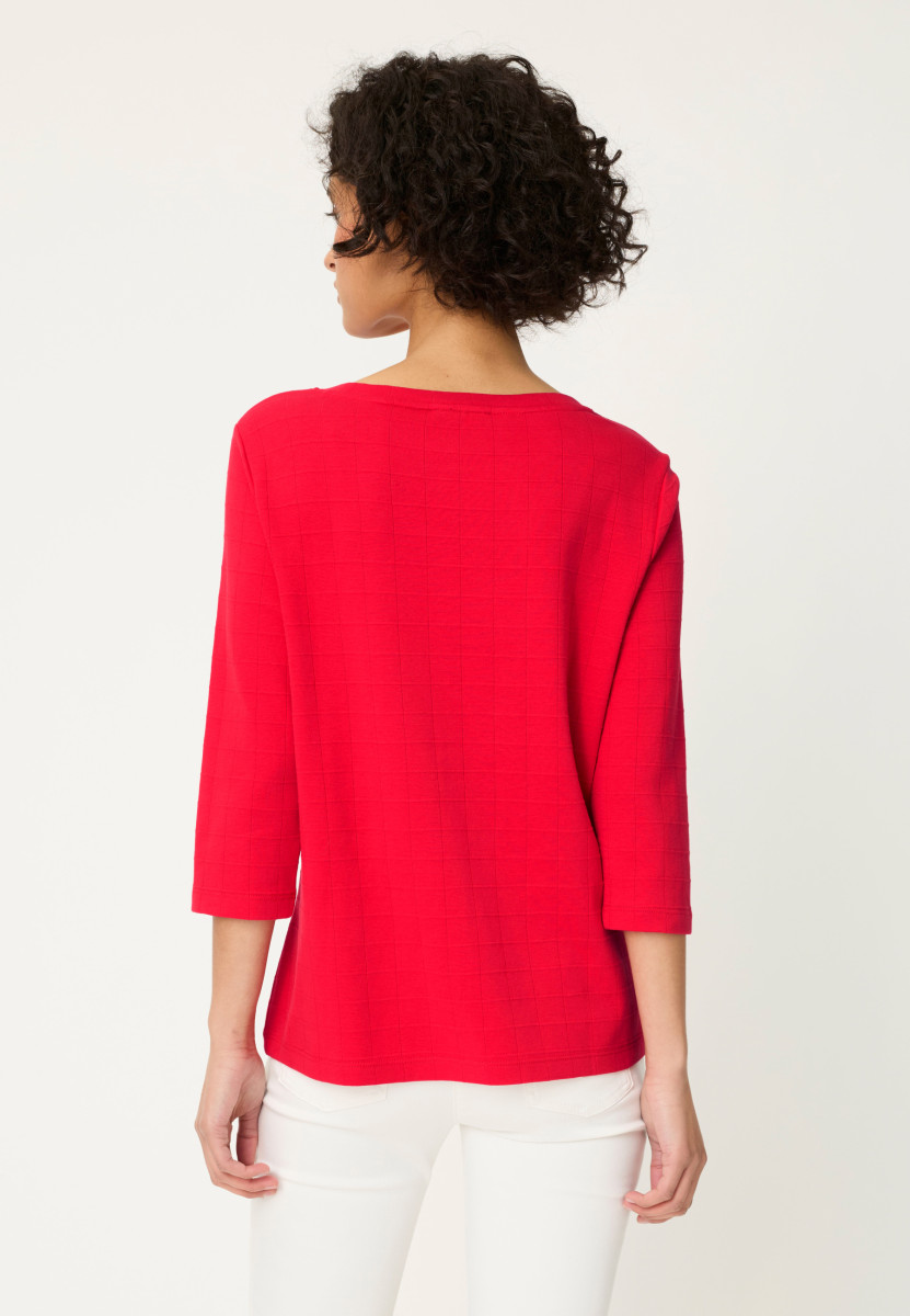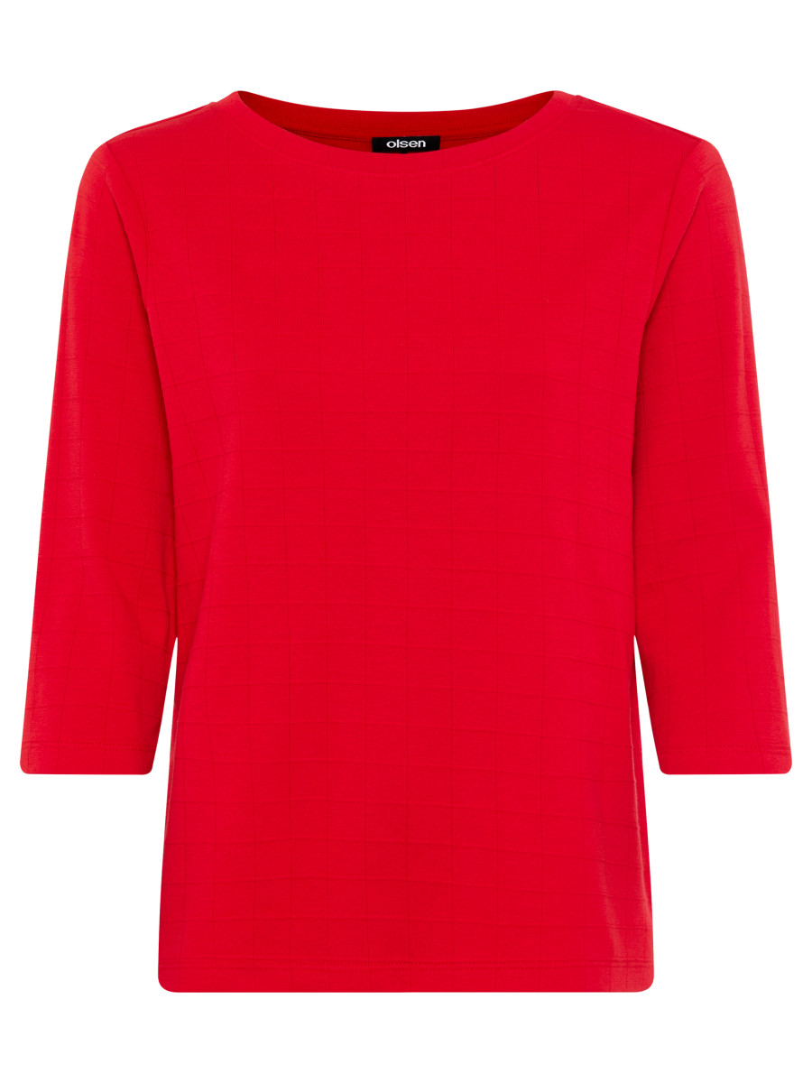 Dieses schöne Rundhalsshirt zeigt ein schlichtes Karomuster und umspielt durch die gerade Olsen-Passform „Hannah“ locker die Figur. Gefertigt aus reiner Baumwolle liegt das Shirt weich auf der Haut auf.
