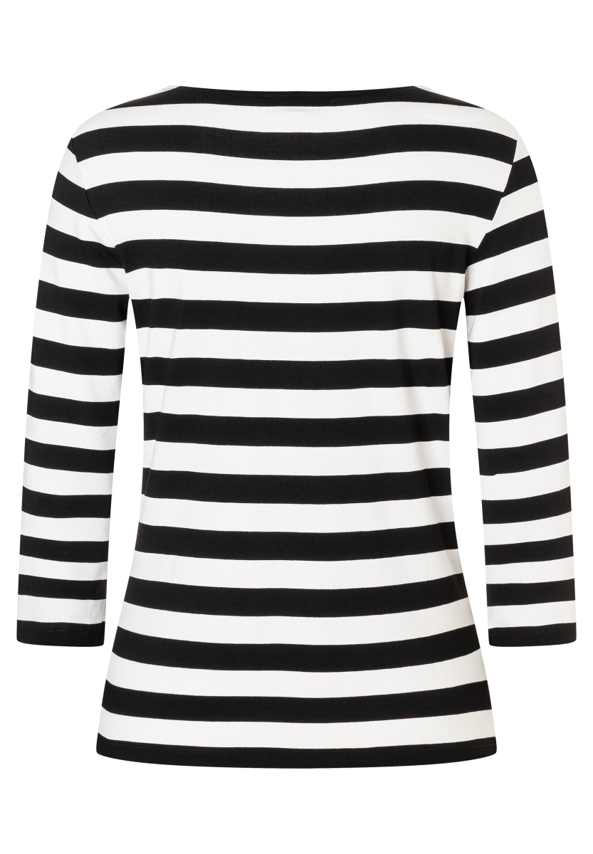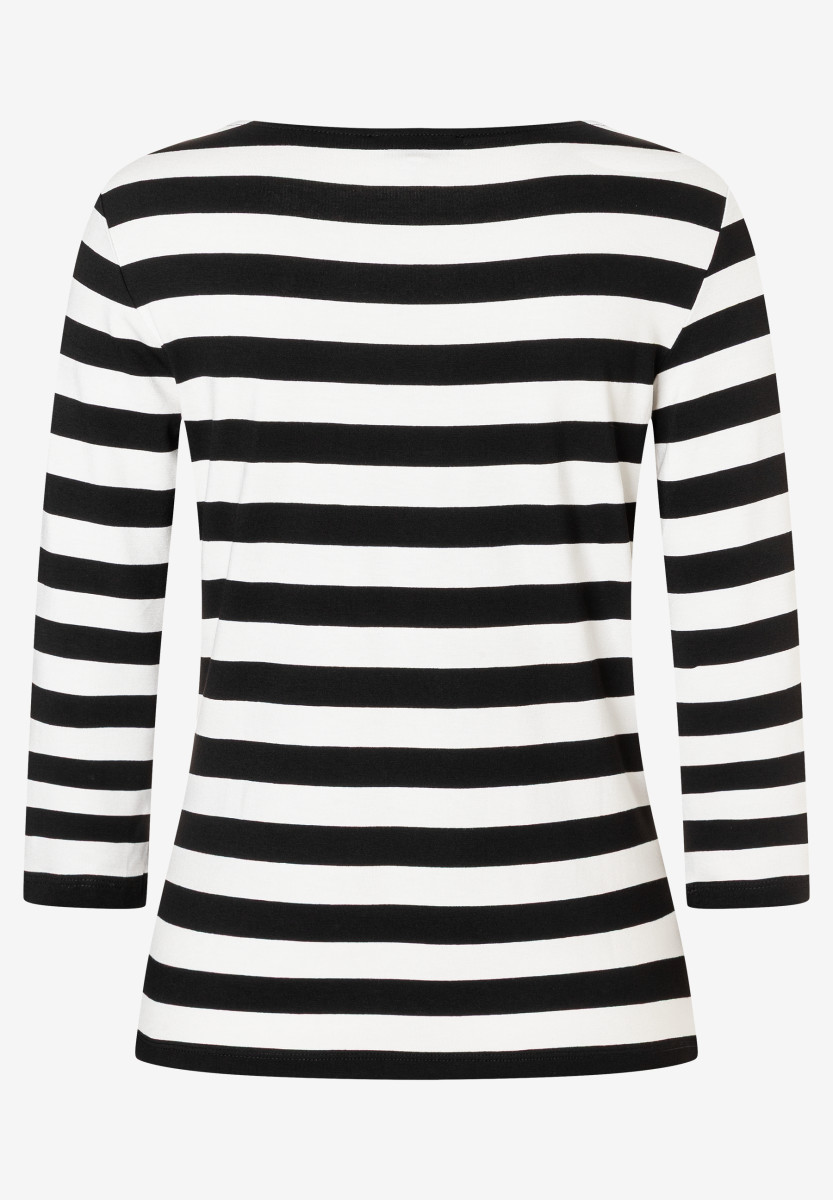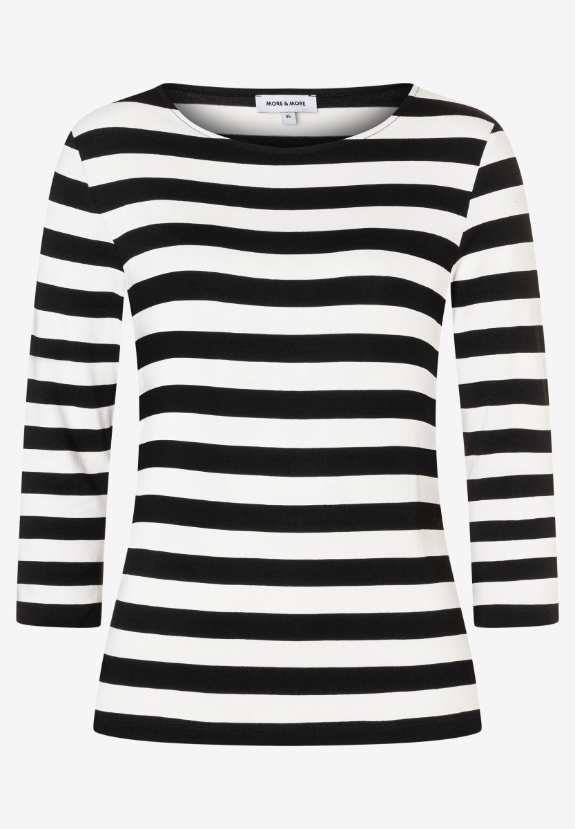 Ein absoluter "Evergreen" von MORE & MORE ist das zweifarbige Ringelshirt mit 3/4 langen Ärmeln und U-Boot Ausschnitt. Es funktioniert 24/7, egal ob zum seriösen Businessanzug, zur verwaschenen Jeans oder zur lässigen Cargohose, sogar zum einfarbigen Maxirock sieht das Shirt super aus.