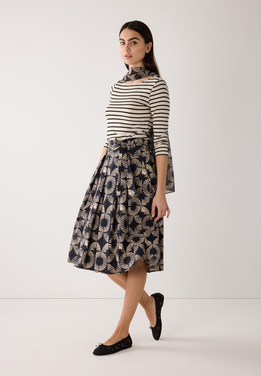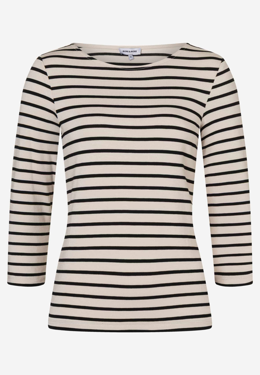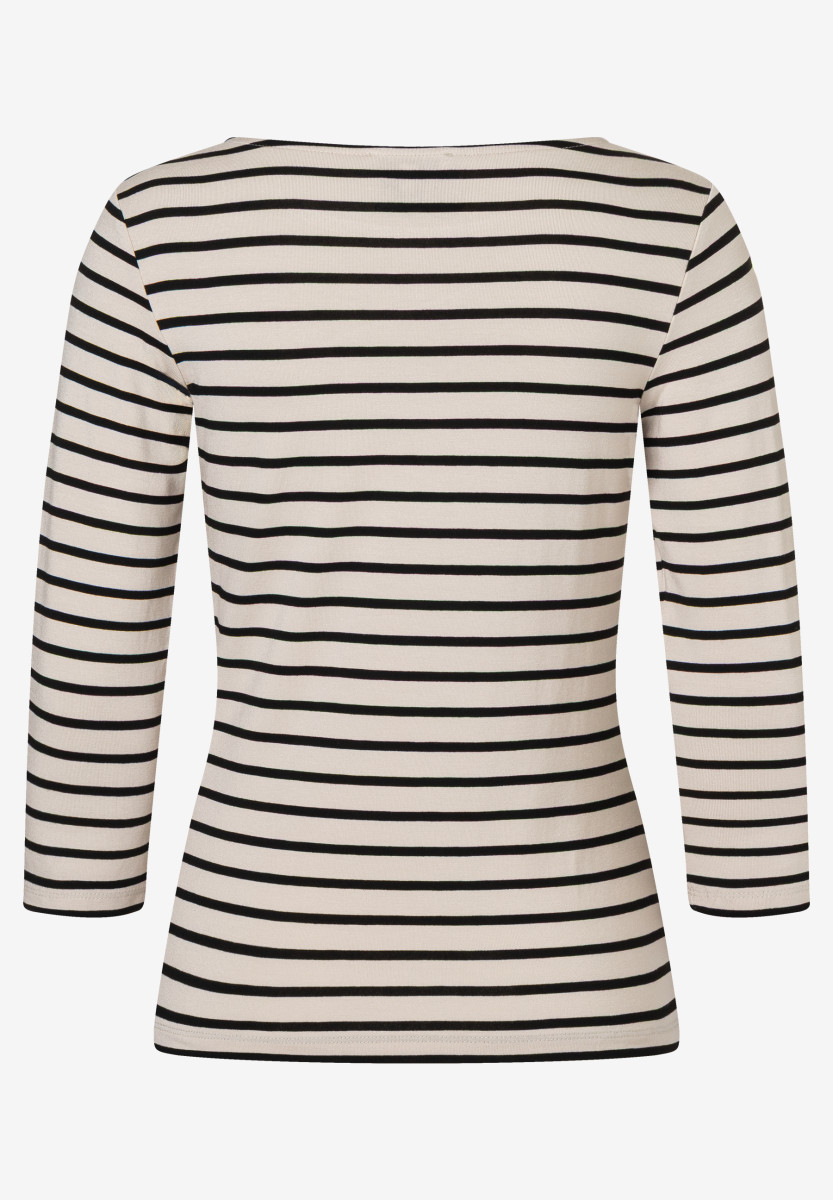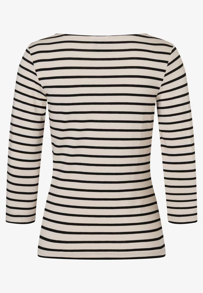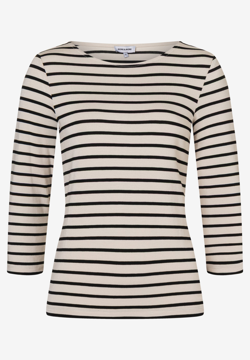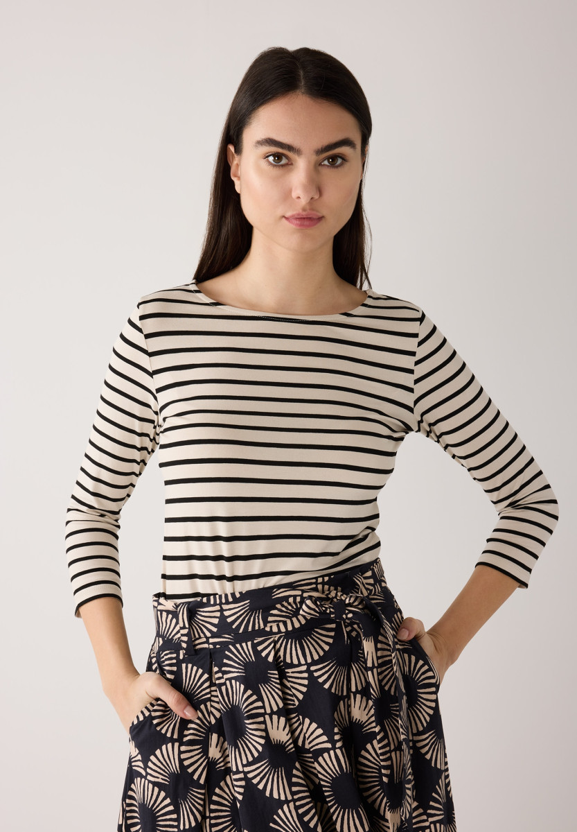 Gerade Form | U-Boot Ausschnitt | 3/4 lange Ärmel | Zweifarbiges Streifenmuster | Angenehmer Viskose-Jersey