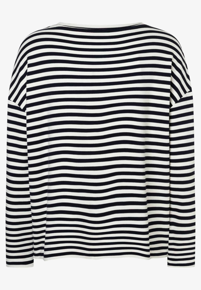 Dieses lässig-geschnittene Langarmshirt von MORE & MORE in marine/weiß gestreift bringt sofort einen maritimen Touch in Ihren Look. Das weiche Material fällt locker und sorgt für ein angenehm entspanntes Tragegefühl und das rosafarbene Frottee-Herz setzt einen liebevollen, verspielten Akzent - das perfekte Shirt für mühelos, stylische Alltags-Outfits.