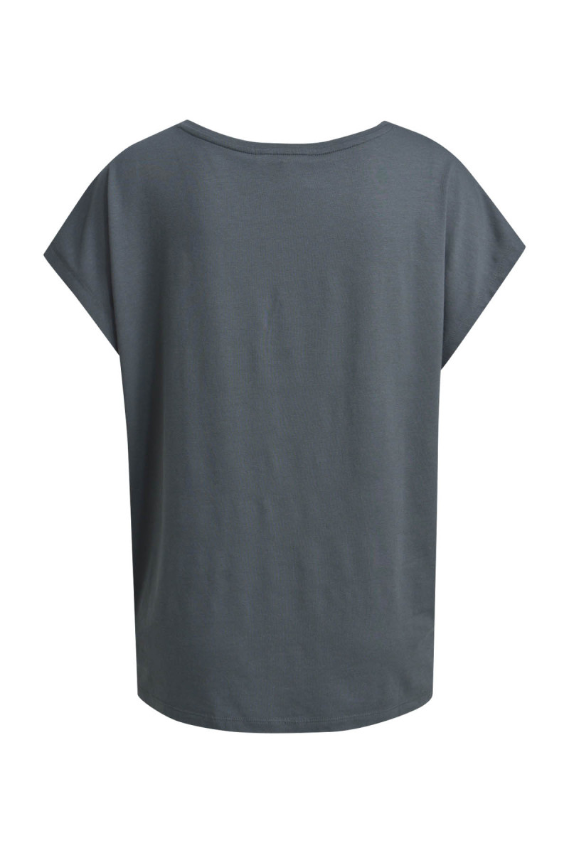 Dieses kurzärmelige Shirt überzeugt durch seine lockere, bequeme Passform und den lässigen Schnitt mit überschnittenen Schultern. Der weite, runde Halsausschnitt unterstreicht den entspannten Look. Ein grafisches Statement-Motto in handschriftlicher Optik auf der Vorderseite macht das Oberteil zum Blickfang. Gefertigt aus einem weichen, fließenden Material bietet dieses Shirt hohen Tragekomfort und ist ein ideales Basic für legere Alltags-Outfits, das sich leicht kombinieren lässt.