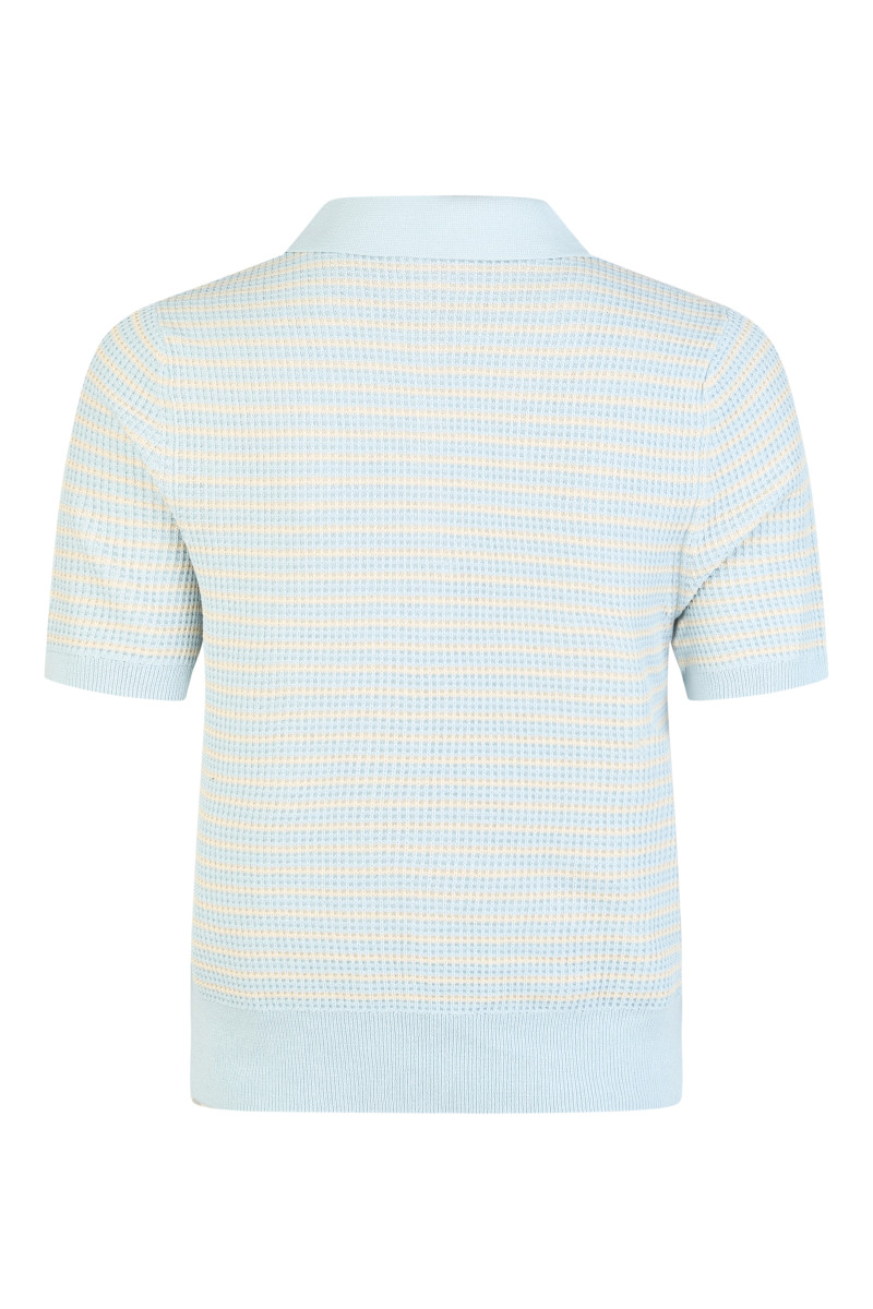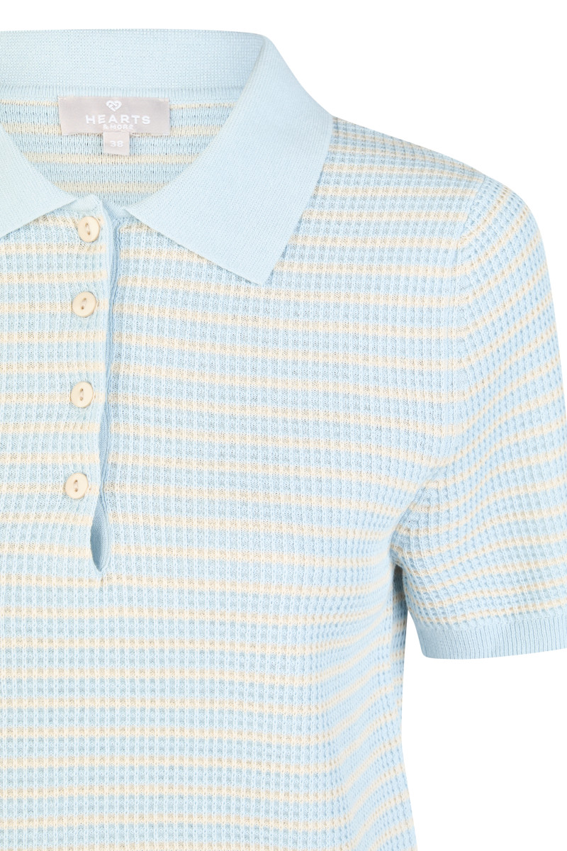 Hemdkragen | Halbe Knopfleiste | Kurzarm | Rippbündchen | Streifenmuster | Strickware | Reine Baumwolle