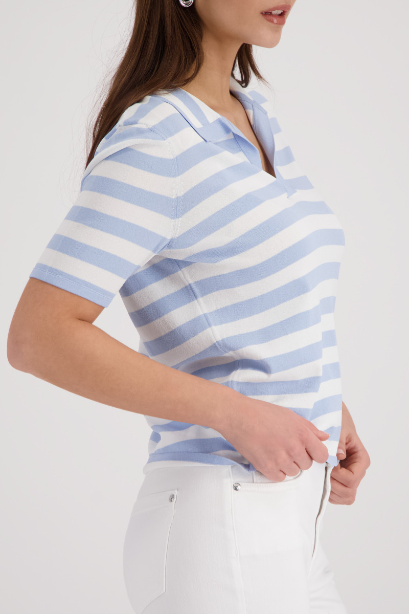 Fließende Viskose | Fein gestrickt | Regular Fit | Polo-Kragen | Kurzarm | Gestreift