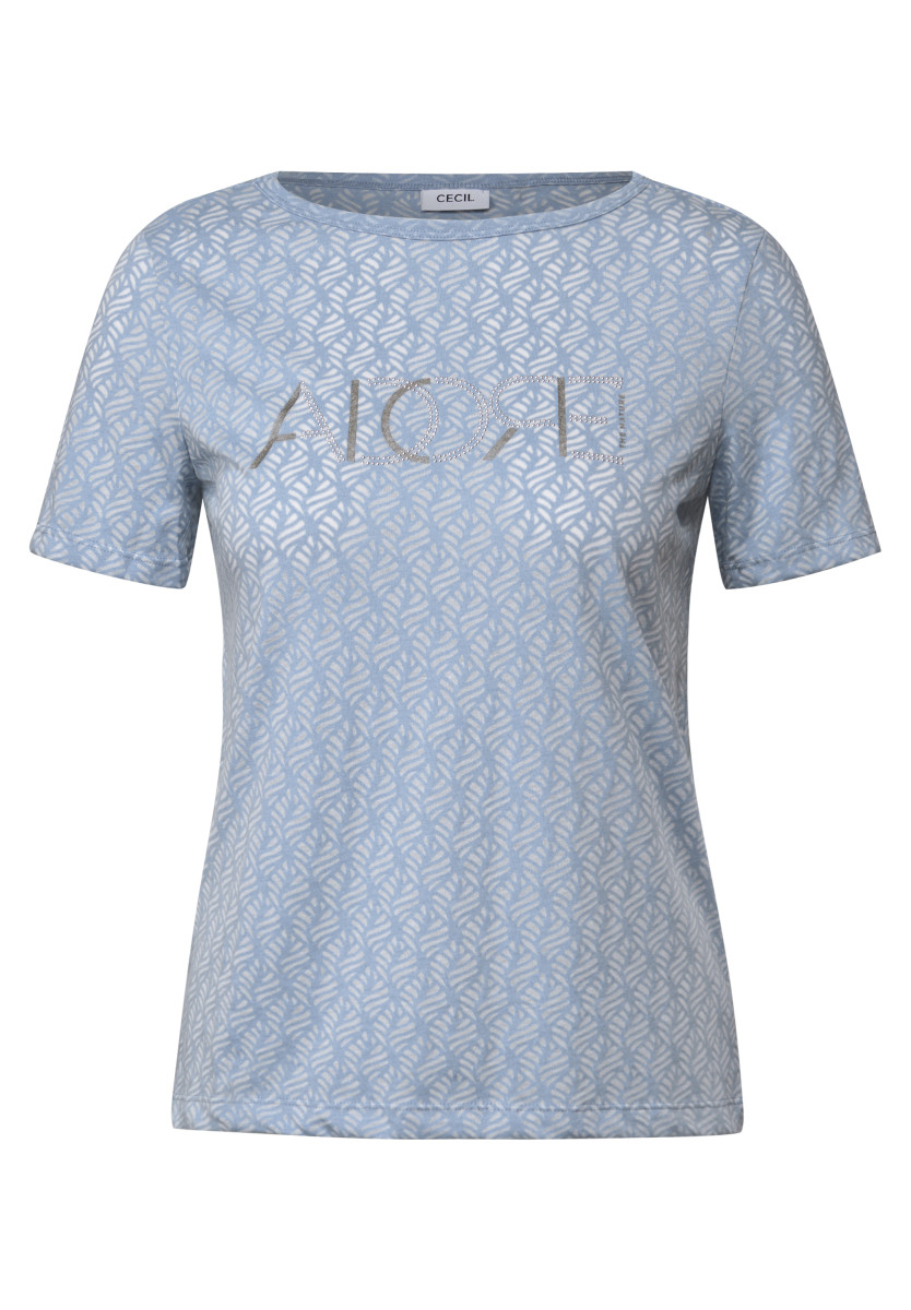 Das Ausbrenner-Shirt von CECIL für Damen begeistert mit Folien-Wording und semitransparenter Optik mit feinem Muster. Rundhalsausschnitt und kurze Ärmel runden das Design ab, während der angenehme Materialmix für hohen Tragekomfort sorgt. Perfekt für lässige Looks mit besonderem Detail. T-Shirt in Burn-Out-Optik Rundhalsausschnitt Kurzarm Folien Wording Angenehmer Tragekomfort Material: 50% Baumwolle, 50% Polyester