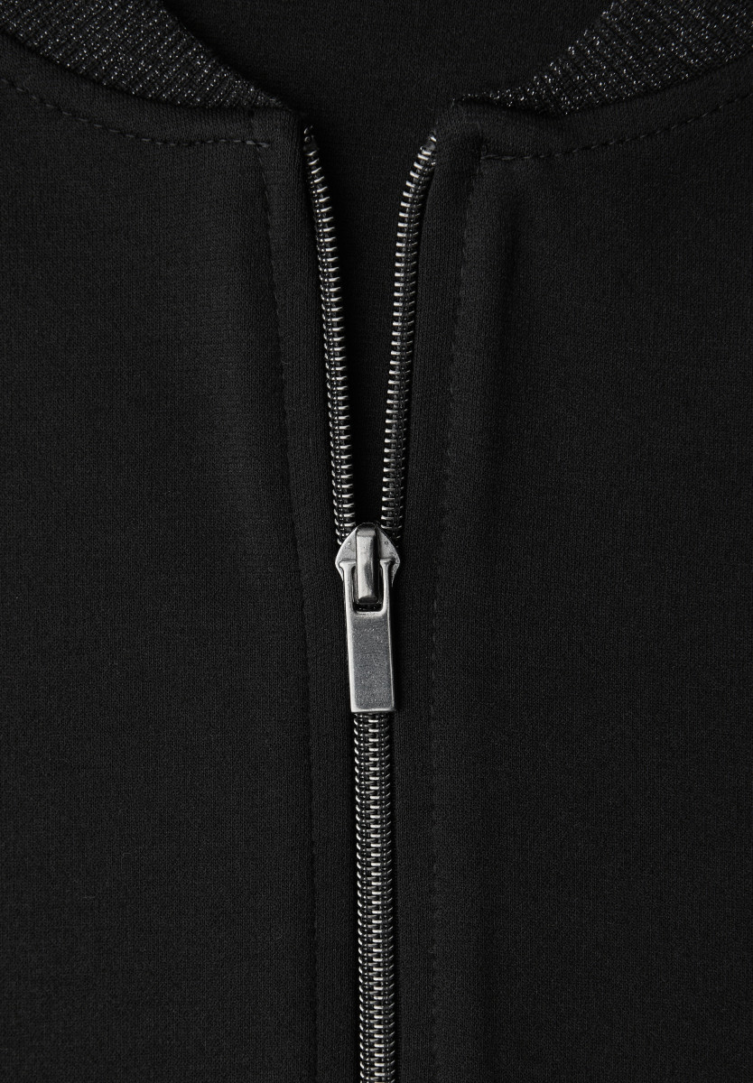Die leichte Sweatjacke von Street One für Damen präsentiert sich in moderner Blouson-Optik mit feinen Glitzerdetails und eignet sich ideal für lässige Outfits. So lässt sich die Jacke vielseitig für sportiv-feminine Looks kombinieren. Leichte Sweatjacke Blouson-Optik Glitzerdetails Tunnelzug am Saum Langarm mit elastischen Bündchen Material: 71% Polyester, 26% Viskose, 3% Elasthan