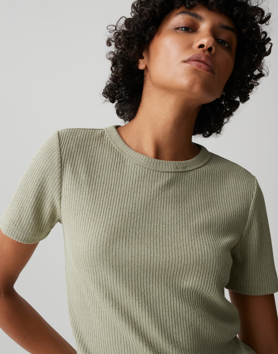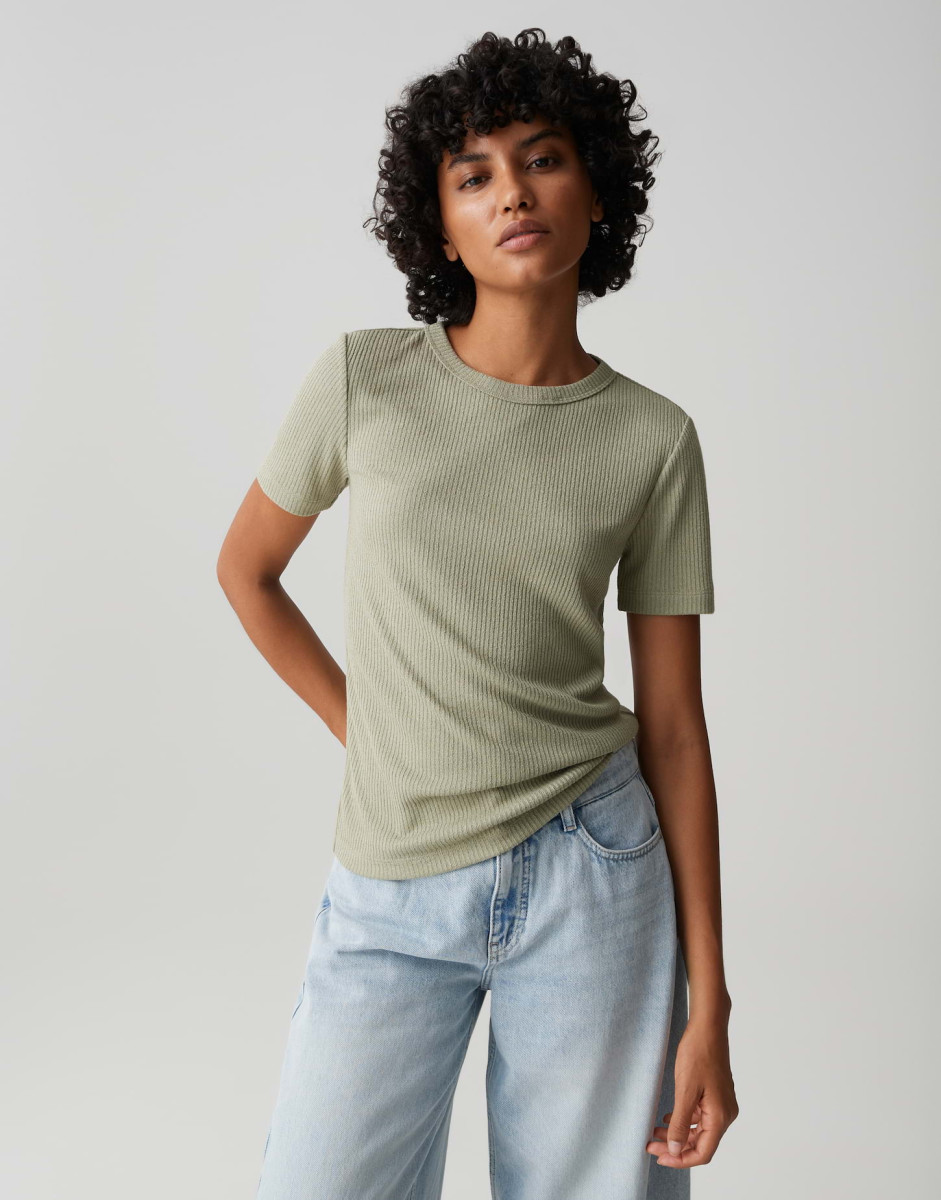 Ein echtes Must-Have für jeden Kleiderschrank ist dieses gerippte Jersey T-Shirt aus softem Rippjersey, das mit seiner klaren Silhouette die perfekte Basis für unzählige Casual Looks bildet. Der nachhaltige Viskose Mix sorgt dabei für ein angenehmes Tragegefühl.