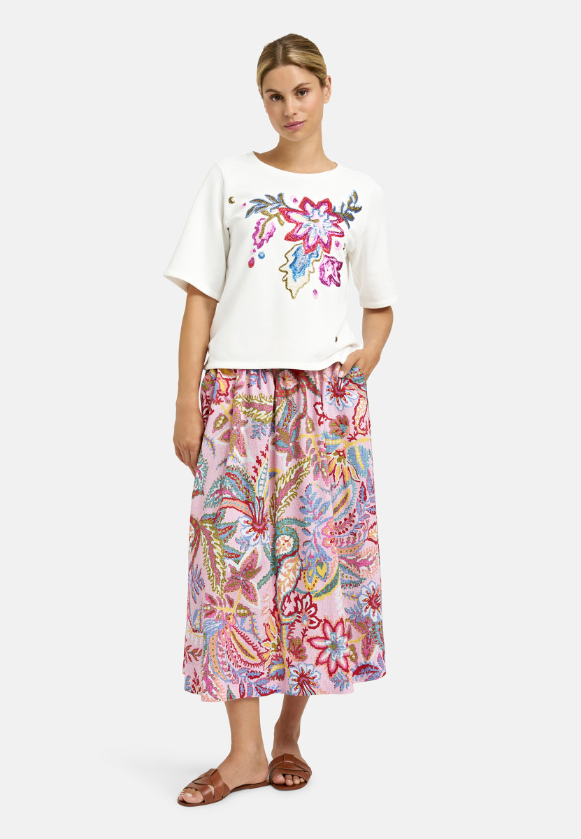 Rundhalsausschnitt | Halbarm | Boxy Fit | Baumwoll-Mix | Glitzer-Print