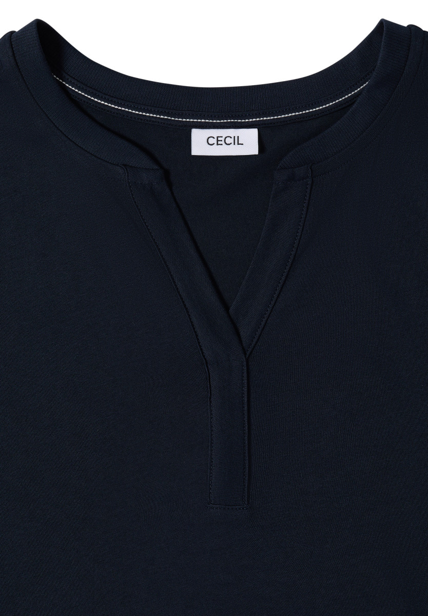 Das Shirt im Tunika-Look von CECIL für Damen überzeugt mit seinem schlichten Design und vielseitigen Kombinationsmöglichkeiten. Der Split Neck mit Rippdetails verleiht dem Kurzarmshirt eine moderne Note, und der elastische Saum sorgt für einen bequemen Sitz. Der softe Baumwoll-Modalmix ist angenehm zu tragen.