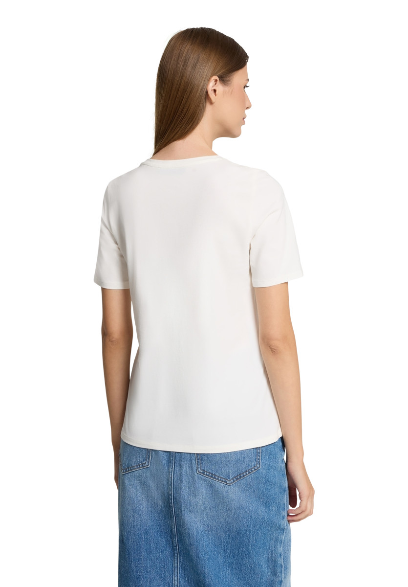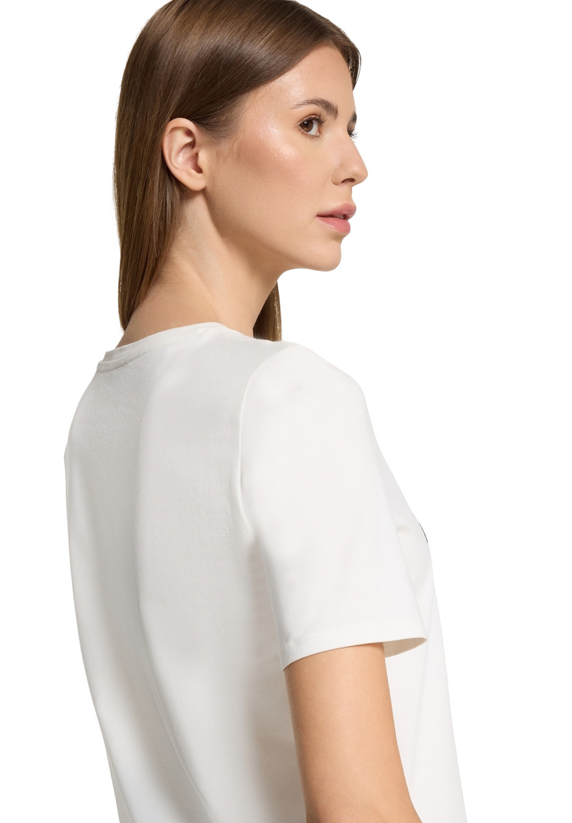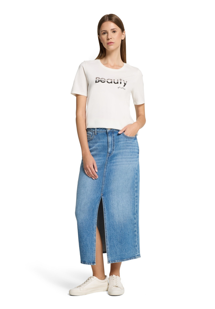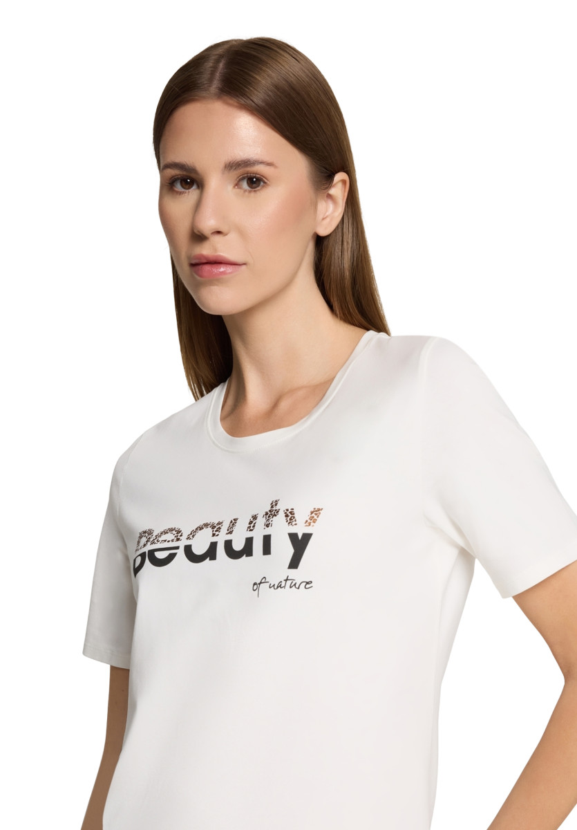 Dieses Basic-Shirt darf in Ihrem Kleiderschrank nicht fehlen! Mit seinem femininen, leicht taillierten Schnitt sorgt es für eine schmeichelhafte Silhouette. Der auffällige Foliendruck und das Placement-Design verleihen dem Shirt einen modernen, trendigenAkzent. Das vielseitige Stück lässt sich mühelos kombinieren und ist sowohl im Alltag als auch bei besonderen Anlässen ein echter Hingucker. Ein Must-Have für jeden Kleiderschrank!