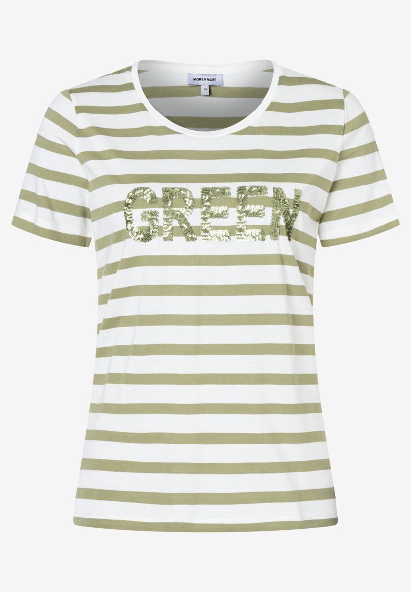 Gerade Form | Runder Ausschnitt | Kurze Ärmel | Streifen-Dessin mit Paillettenschrift | Angenehme Baumwoll/Modal Mischung