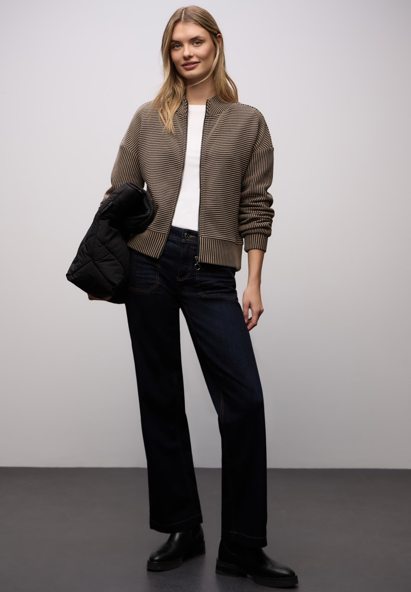 Diese leichte Sweatjacke von Street One für Damen begeistert mit feinem Strukturmuster und sportivem Two-Tone-Design. Der Turtleneck mit Reißverschluss und Bündchen an den Ärmeln sorgen für Komfort und einen modernen Look. Die weiche Qualität macht sie angenehm zu tragen. Ein stylisher Begleiter für entspannte Tage. Leichte Sweatjacke Strukturmuster Turtleneck Langarm mit Bündchen Reißverschluss Material: 52% Polyester, 32% Baumwolle, 13% Viskose, 3% Elasthan