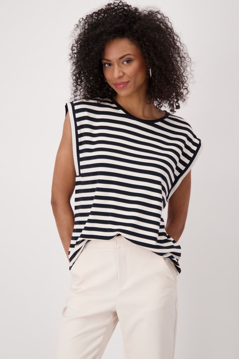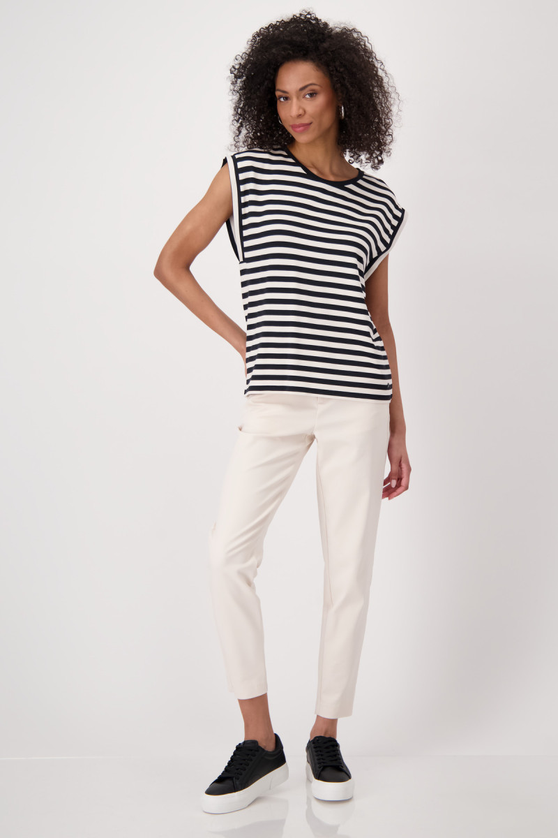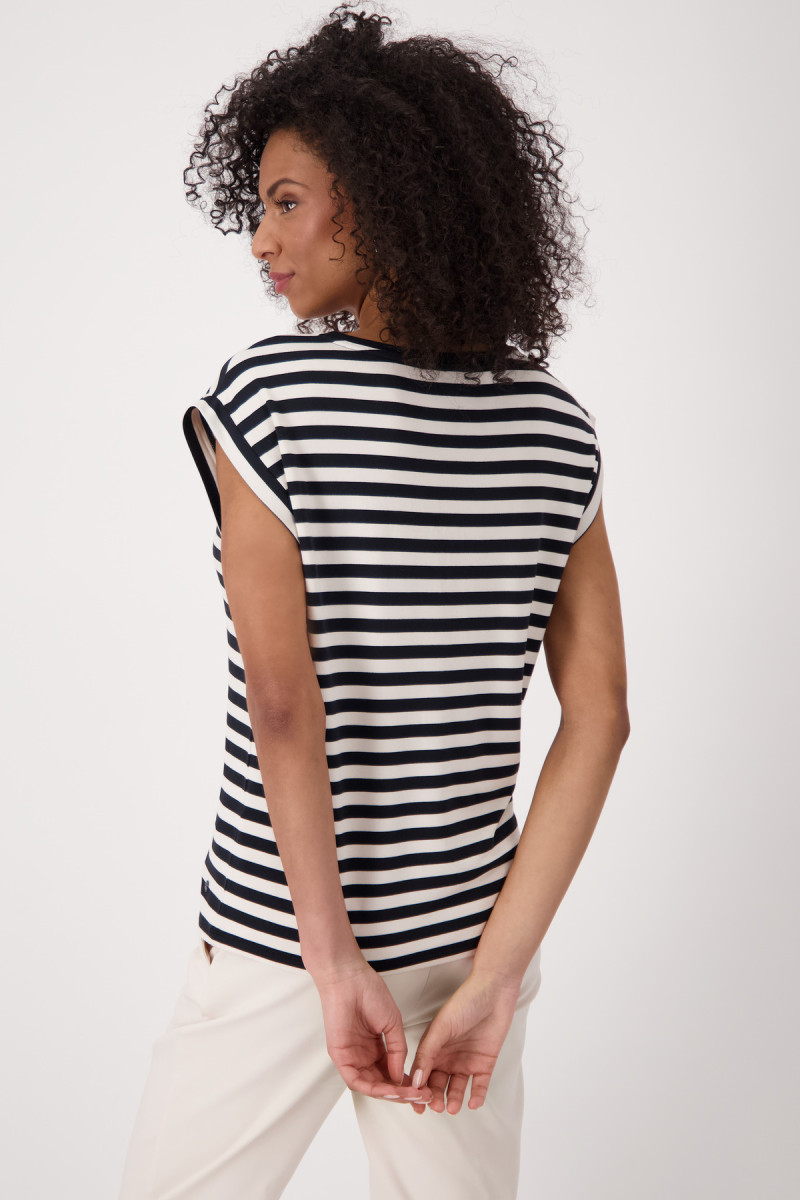 Dieses gestreifte T-Shirt besteht aus einer angenehmen Mischung aus Viskose und Modal. Das elastische Material sorgt für einen perfekten Sitz.