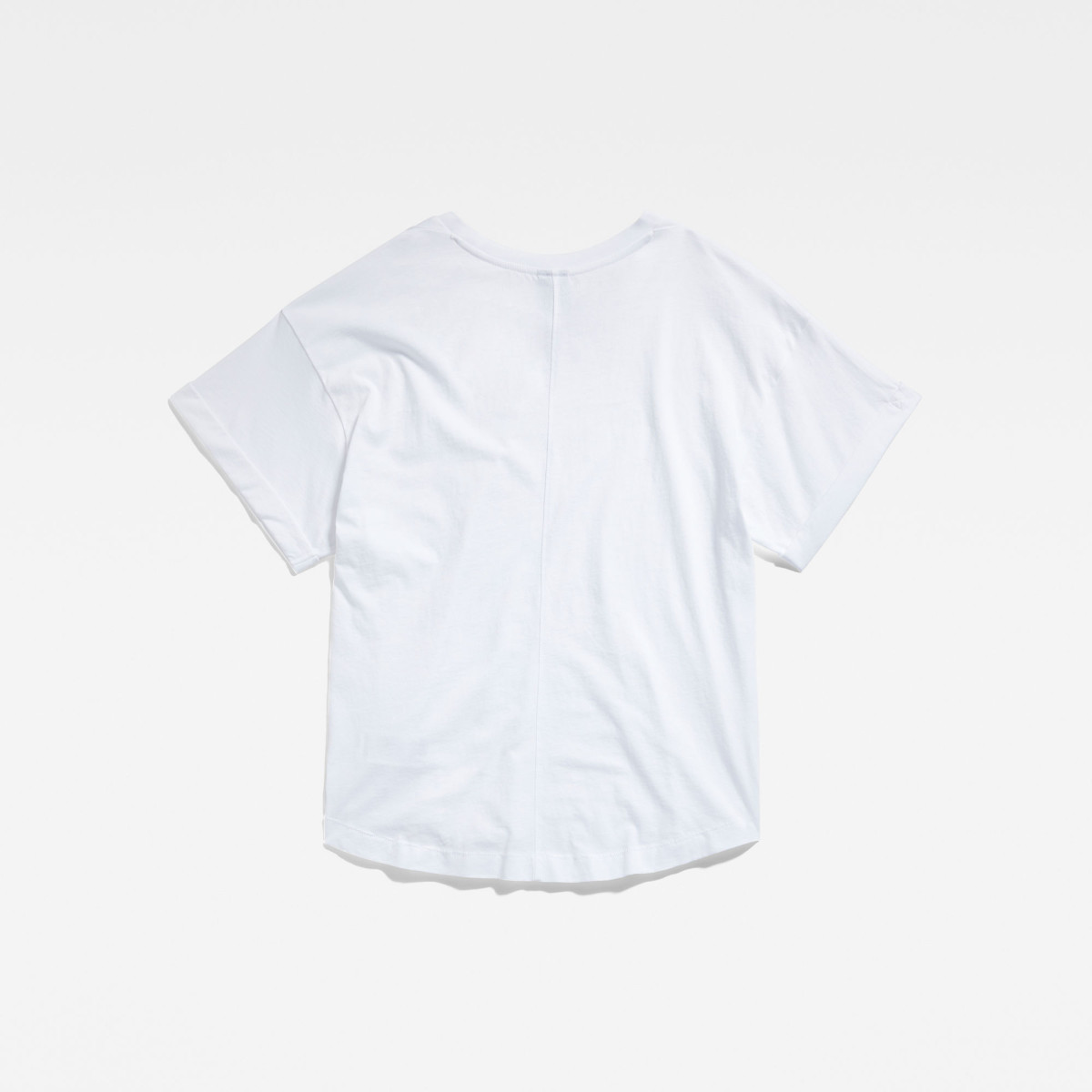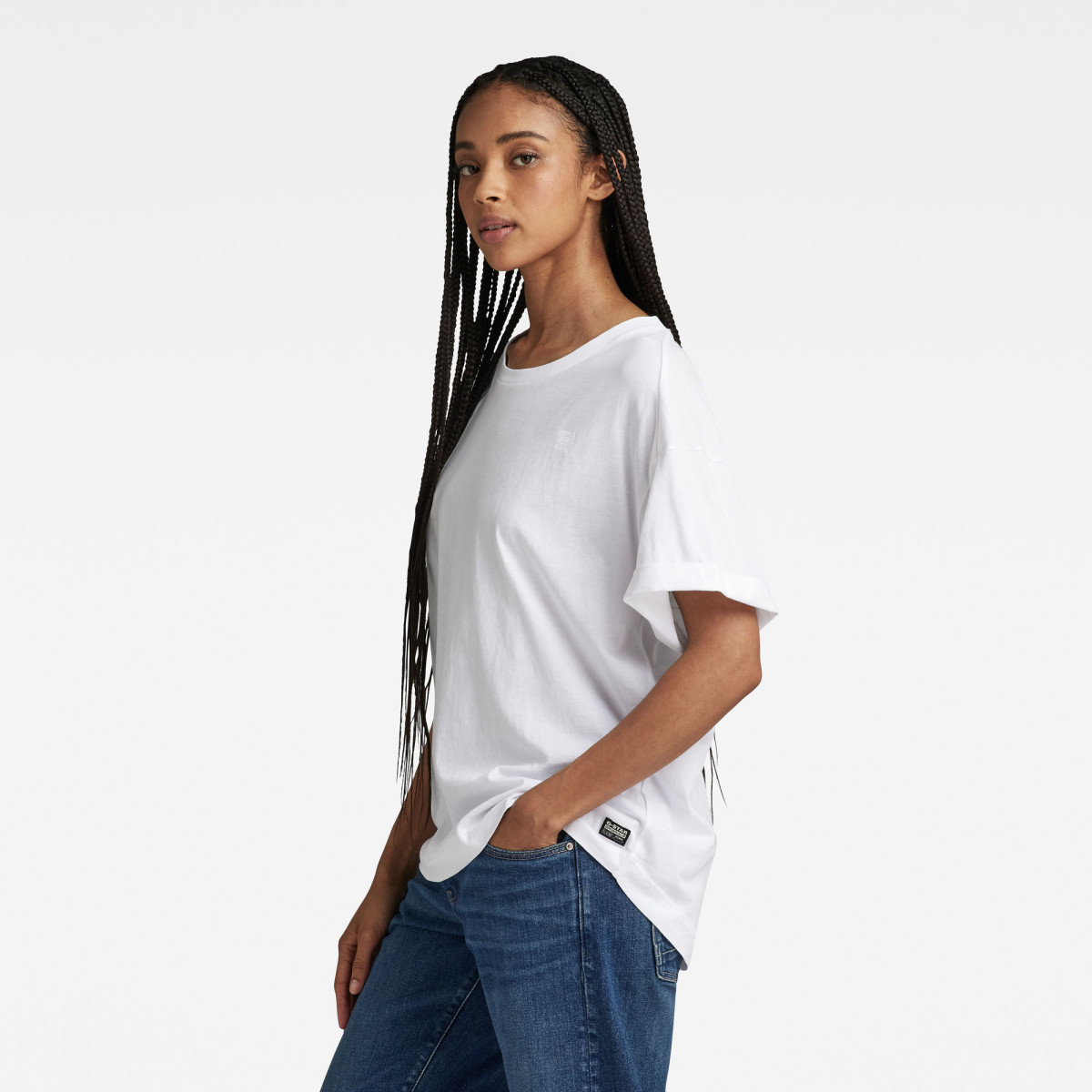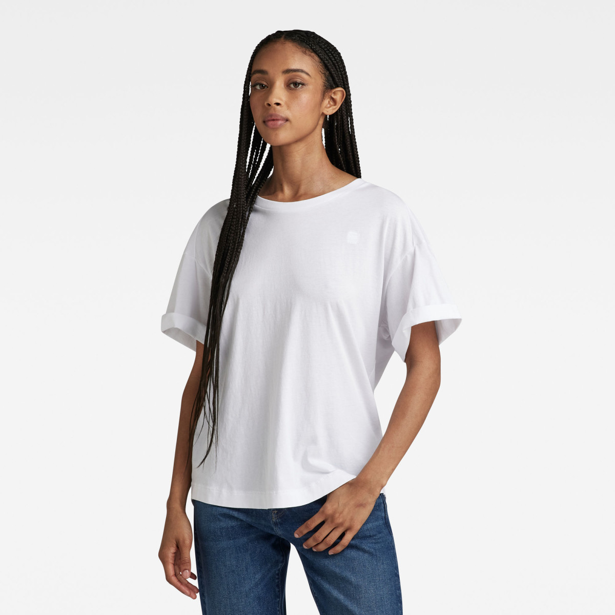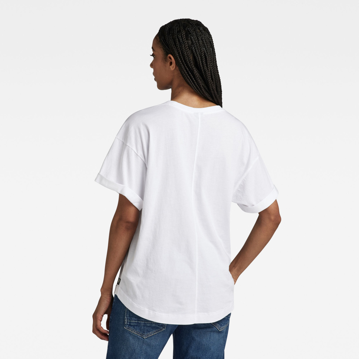 Das Rolled Up Sleeve Boyfriend Top ist in einer weiten Passform mit kurzen Ärmeln mit Umschlagsaum gestaltet. Auf der Rückseite befindet sich eine vertikale Naht.