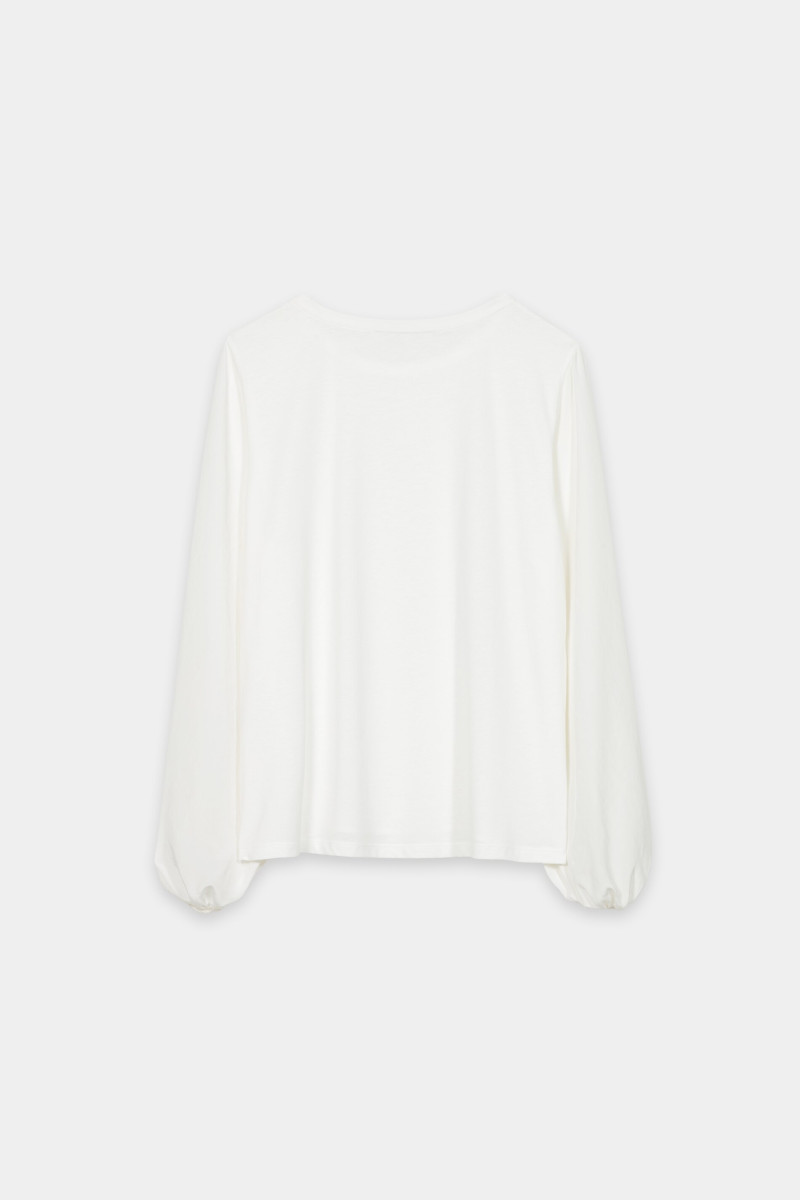 Langarmshirt aus Materialmix mit leichtem U-Boot-Ausschnitt und elastischem Ärmelabschluss. Vorderseite und Ärmel bestehen aus fließender Techno-Seide. Die Rückseite ist aus Jersey-Material gearbeitet. Unser Model ist 178 cm groß und trägt Größe 36.