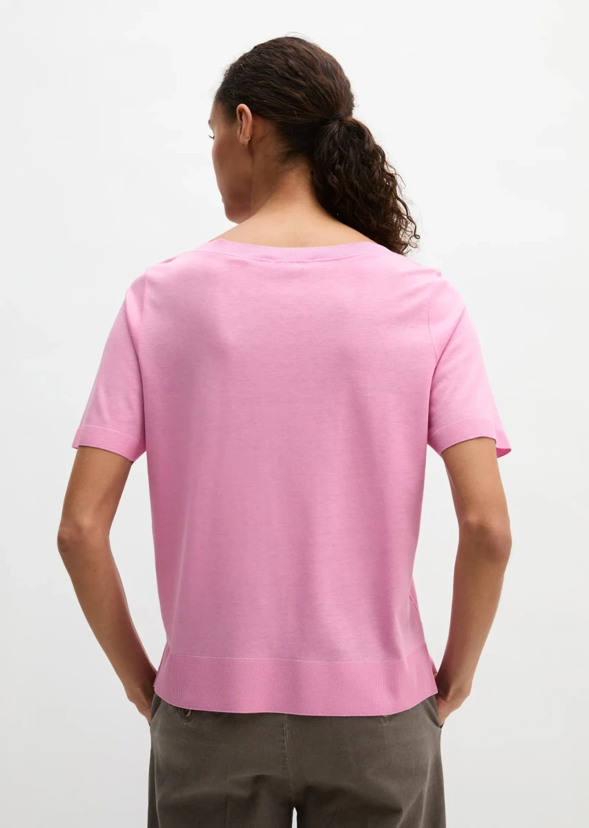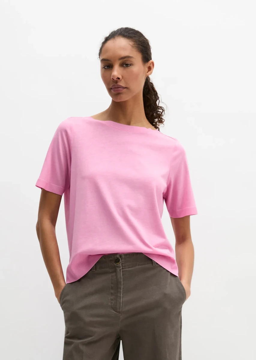 Dieses zeitlos klassische, aber auch frisch moderne T-Shirt aus einem edlen Mix aus weichem Lyocell von TENCEL™ und reiner Baumwolle im Feinstrick-Look ist ein echter Allrounder. Das Besondere: Die exklusive Jersey-Ware wird auf speziellen Maschinen gestrickt, sodass sie optisch wie eine leichte Strickpullover-Qualität aussieht. Ein weiteres hochwertiges Merkmal sind die feingerippten Bündchen an U-Boot-Ausschnitt, Ärmelabschluss und Saum, die nicht angenäht, sondern angestrickt sind. Das Shirt hat einen gerade geschnittenen Regular Fit mit leicht überschnittenen Schultern und lässigen Seitennaht-Schlitzen.