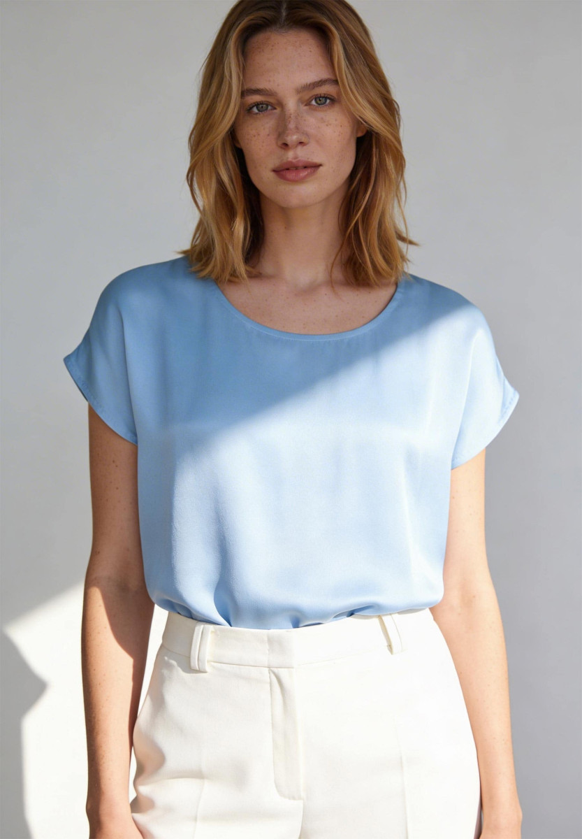 Das moderne Shirt von MORE & MORE mit edel-glänzender Satinfront bietet die perfekte Mischung aus Bluse und T-Shirt und lässt sich vielseitig kombinieren.Lief.-Art-Nr: 61820438