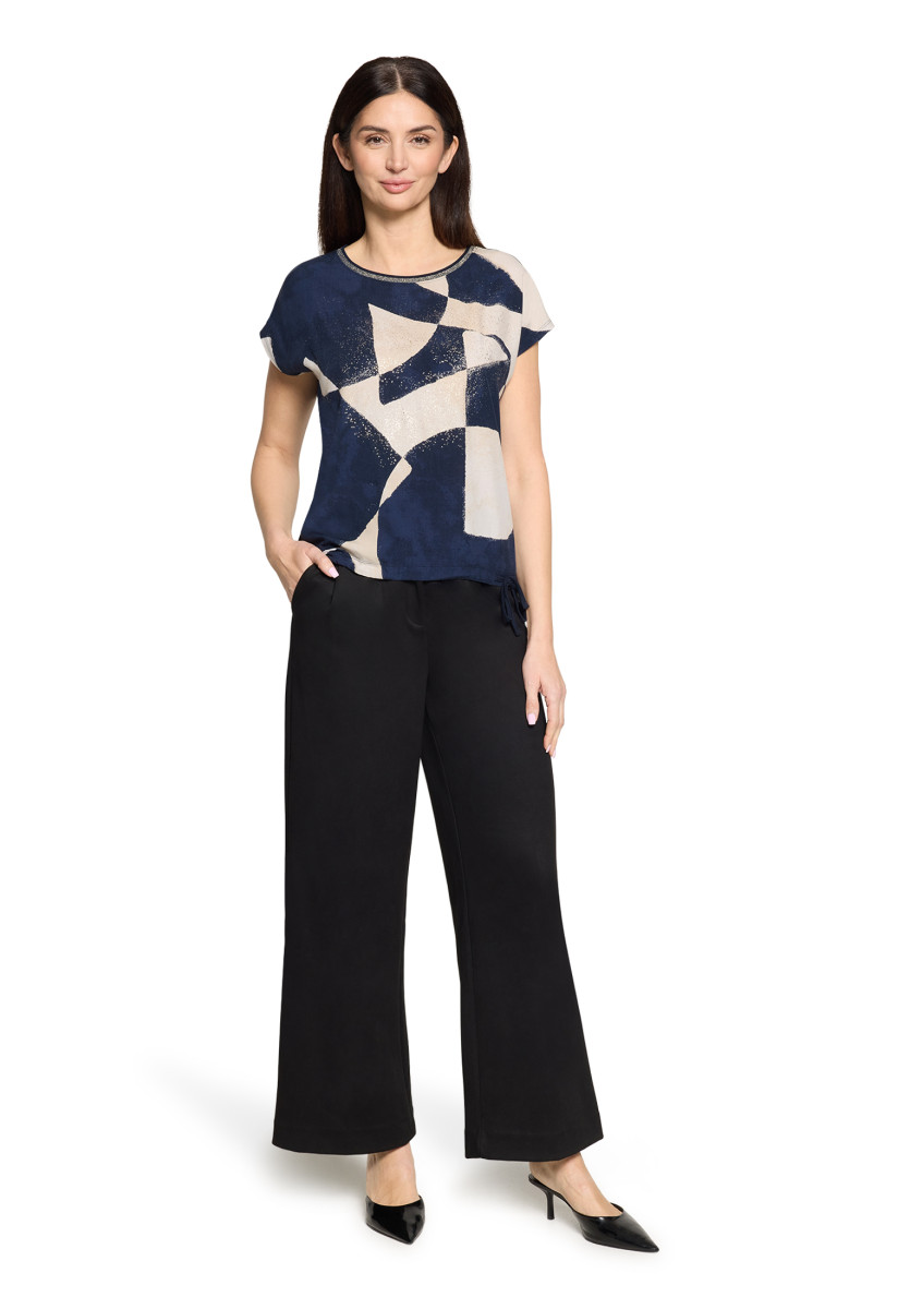 Das lässig geschnittene T-Shirt für Damen überzeugt mit einem angenehmen Rundhals-Ausschnitt und überschnittenen Ärmeln, die für einen entspannten Sitz sorgen. Mit einer Gesamtlänge von etwa 62 cm und einem grafischen Muster ist es vielseitig kombinierbar und eignet sich für zahlreiche Freizeitlooks. Das Vorderteil besteht zu 100% aus Viskose und sorgt für ein weiches Tragegefühl.Lief.-Art-Nr: 22033014