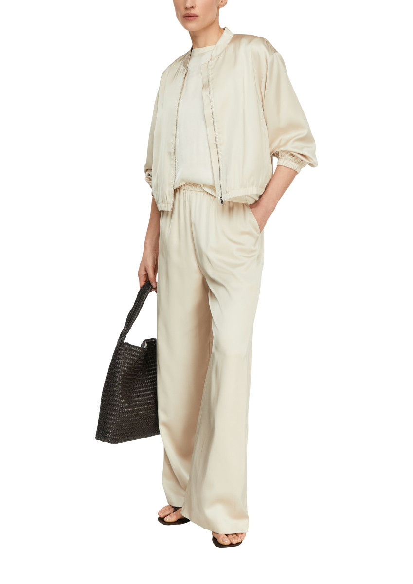 Dieses elegante Blusenshirt im raffinierten Fabricmix vereint fließenden Satin mit weichem Jersey zu einem vielseitigen Styling-Highlight. Die charmanten Volantärmel setzen feminine Akzente, während der gerippte Rundhalsausschnitt für perfekten Halt sorgt. In Relaxed Fit geschnitten bietet es angenehmen Tragekomfort für Casual- und Business-Anlässe. Kombinieren Sie es zur Jeans für entspannte Looks oder zur Businesshose für professionelle Eleganz – ein wahres Multitalent für Ihre Garderobe.Lief.-Art-Nr: 2177227