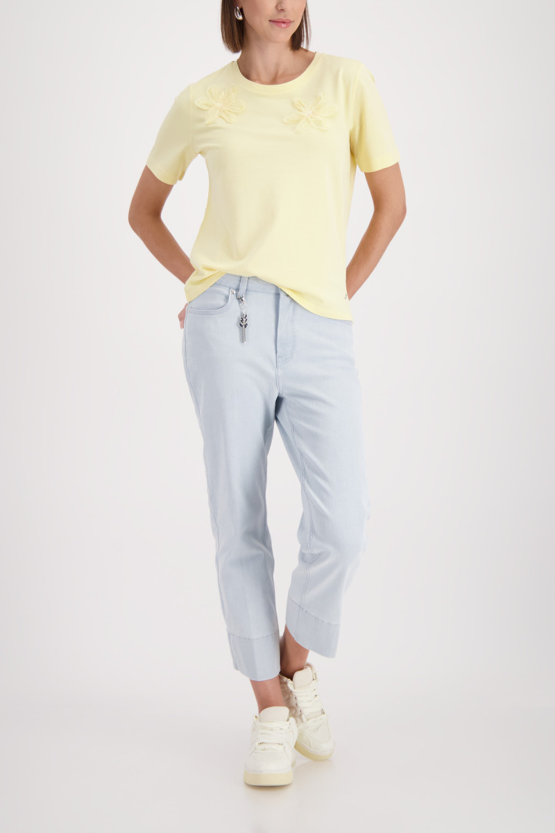 Elegantes T-Shirt mit 3D-Blumen, aus einer hochwertigen Baumwolle und Modal mit Frottee-Innenseite, Rundhalsausschnitt und Kurzarm.
