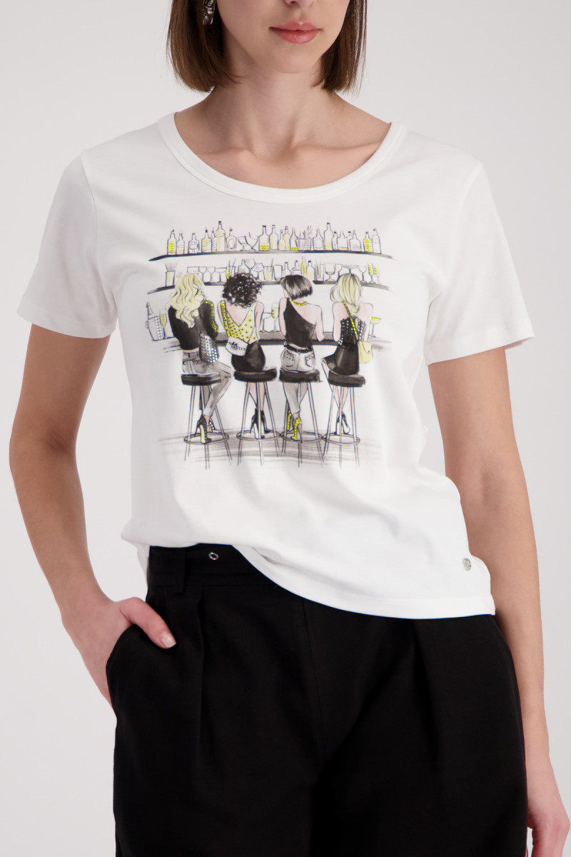 Elegantes T-Shirt aus 100% Baumwolle mit einer weichen Haptik, zarter Frauenzeichnung und funkelnden Strasssteinen im Regular Fit.Lief.-Art-Nr: 410585
