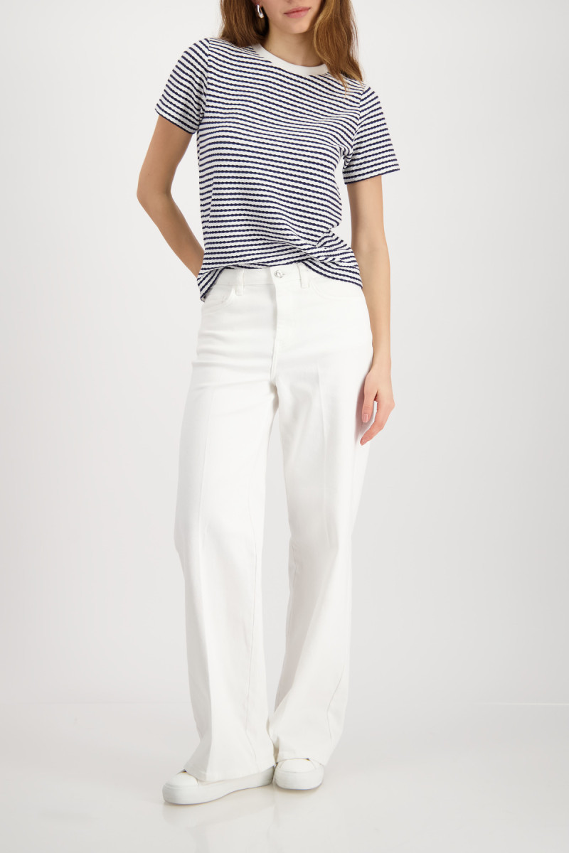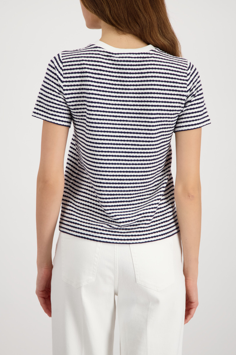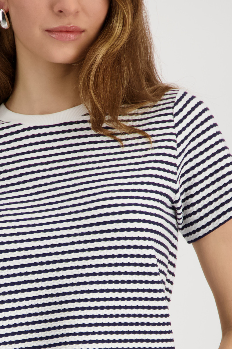 Das T-Shirt aus fließender Viskose und elastischem Material überzeugt mit einer strukturierten Oberfläche und einem gerippten Rundhalsausschnitt.Lief.-Art-Nr: 410932