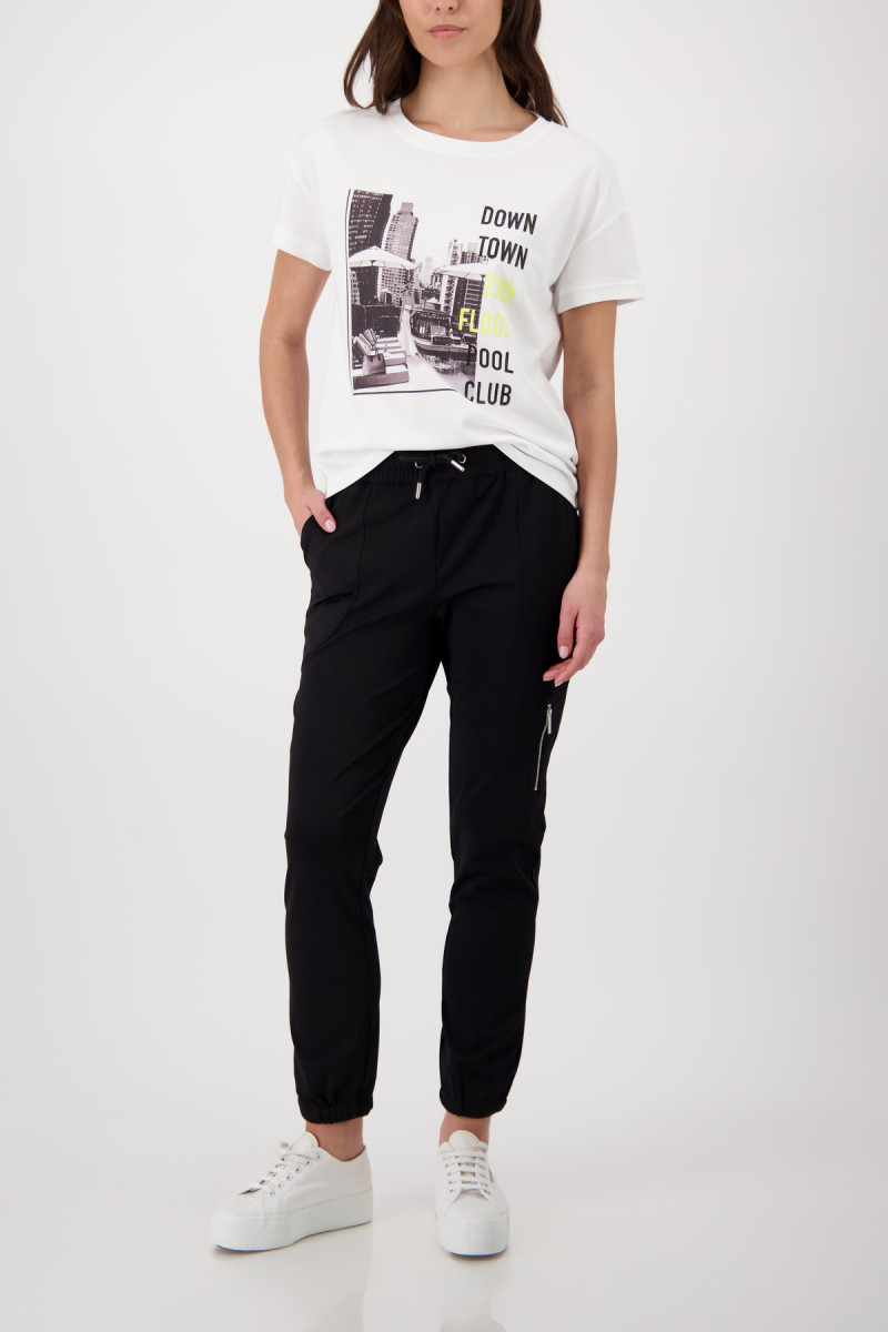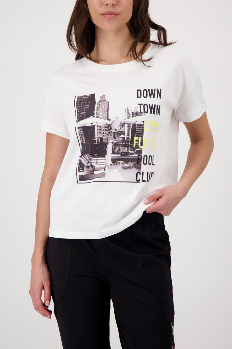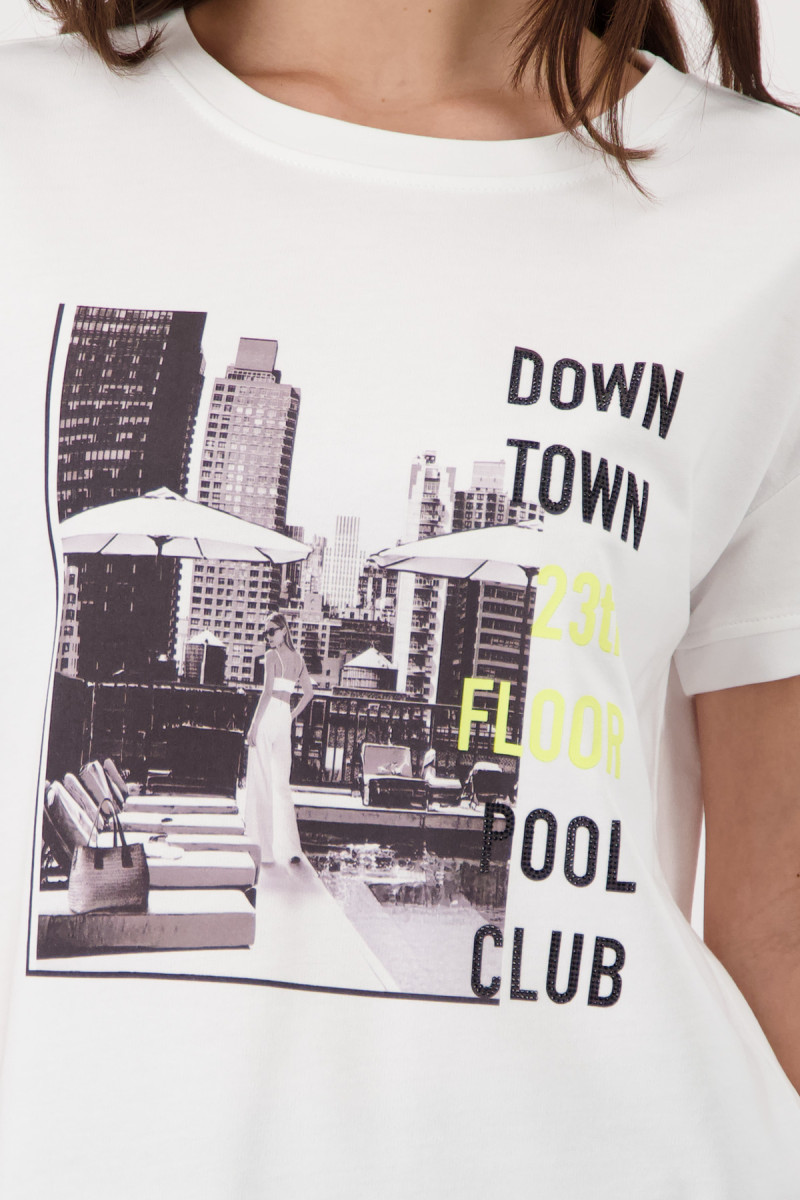 Dieses T-Shirt aus einer hochwertigen Baumwolle und Modal vereint eine weiche Haptik mit stilvollem Rooftop-Print und funkelnden Strasssteinen.Lief.-Art-Nr: 410574