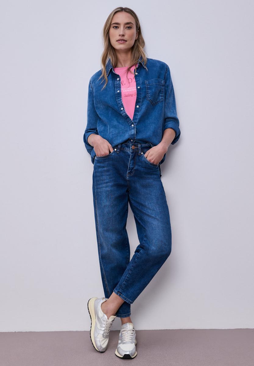 Das T‑Shirt von Street One für Damen bringt mit seinem Wording‑Artwork eine trendige Note in deinen Alltag. Die leichte Viskosequalität mit Stretchanteil fällt weich und sorgt für ein besonders angenehmes Tragegefühl. Der Rundhalsausschnitt und die Kurzarmform runden den lässig‑femininen Look ab. Ein stilvolles Shirt, das vielseitig einsetzbar ist.