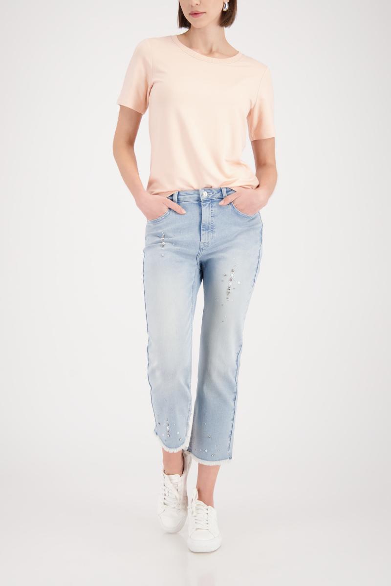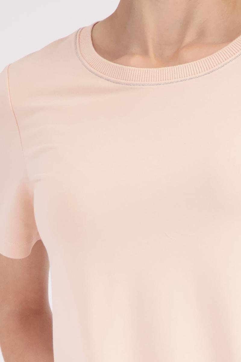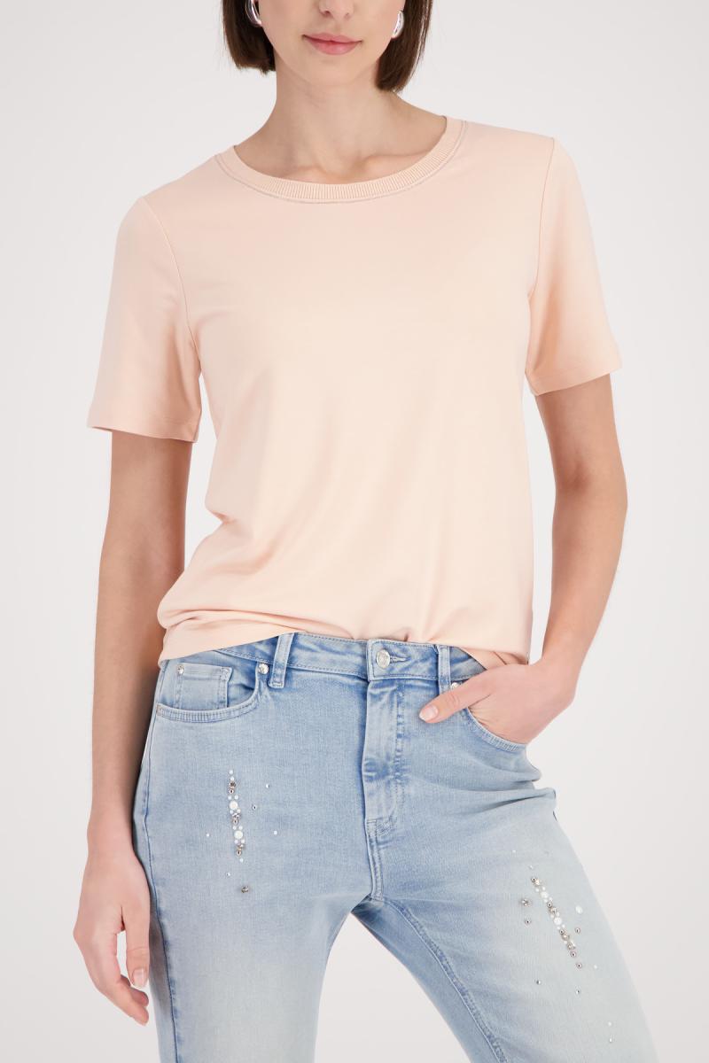 Das T-Shirt ist mit einem feinen Strickkragen gestaltet und wirkt modern sowie feminin. Der Schnitt bietet eine bequeme Passform und eignet sich für vielseitige Alltags- und Freizeitlooks. Das Modell lässt sich unkompliziert kombinieren und ergänzt Ihre Garderobe als lässiges Basic.Lief.-Art-Nr: 410557
