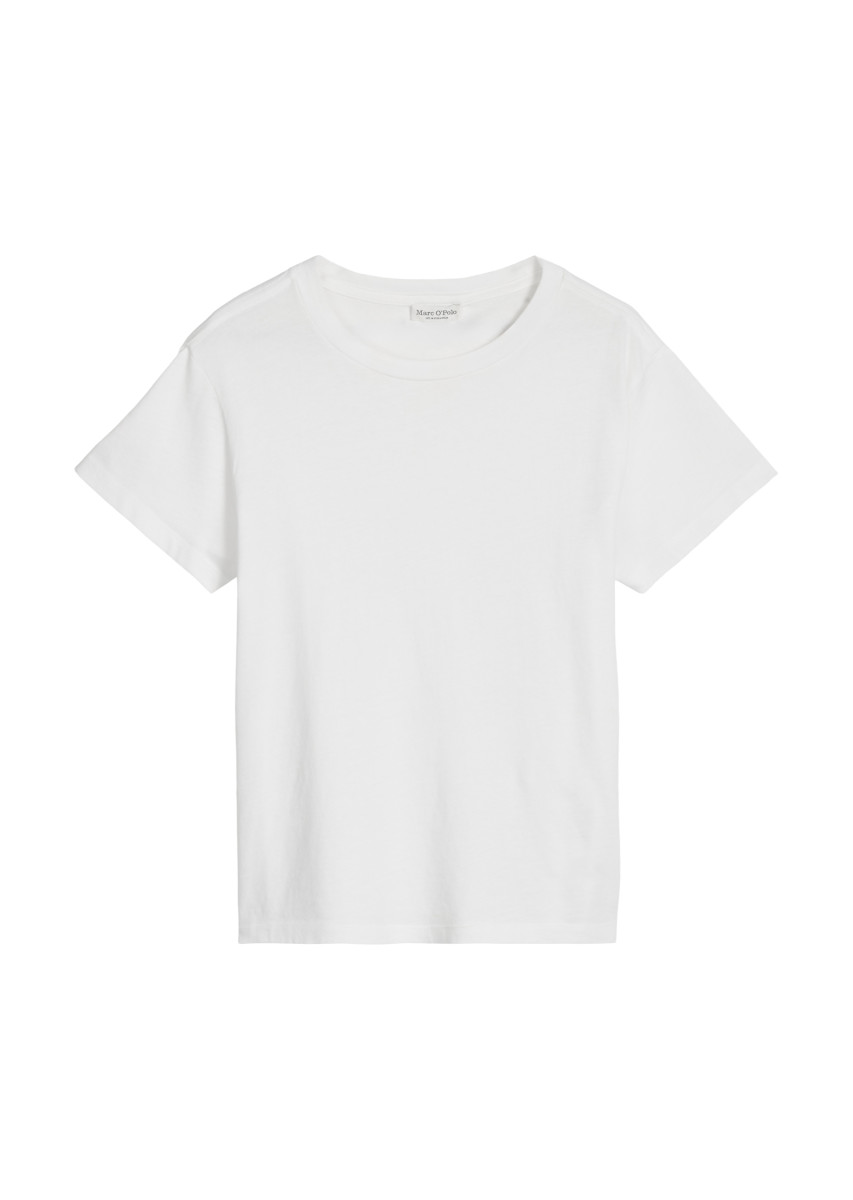Wear it and love it - cooles Damen T-Shirt mit dezentem Logoprint im Nacken. Klassisch locker geschnitten mit fein geripptem Rundhalsausschnitt, kurzen Ärmeln und geradem Saum. Die Qualität: supersofter Single Jersey aus Bio-Baumwolle, "locker gestrickt". Das T-Shirt ist ein beliebter Styling-Allrounder und steht unangefochten an der Spitze der Kleidungsstücke, die wir immer und zu allem kombinieren können.