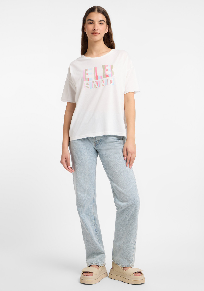 Loose fit, weit geschnittenes T-Shirt | Leichte Single Jersey Qualität mit weichem Griff | Überschnittene Schultern, etwas weiterer Rundhalsausschnitt | Weicher multicolor Gradient-Print auf dem Vorderteil