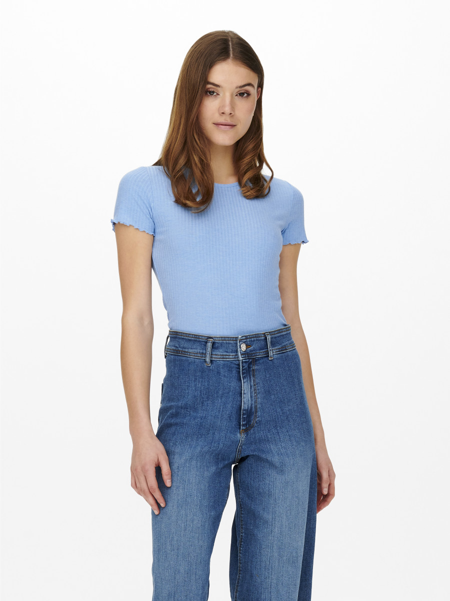 Mit coolen Styles, die du leicht mit den Favoriten in deiner Garderobe kombinieren kannst, siehst du in der Schule, an der Arbeit und im Alltag immer toll aus. - Produkttyp : Top - Hals : Rundhals - Ärmel : Kurzarm - Länge/Größe : Verkürzt - Details : Rüschendetail - Passform : Normal geschnitten