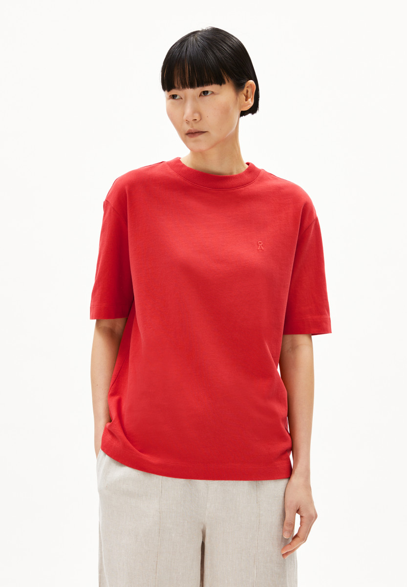 Entdecke das TARJAA T-Shirt aus robustem Jersey mit einer lässigen Passform. Dieses Shirt bietet optimalen Komfort und ist aus Bio- sowie recycelter Baumwolle gefertigt. Die Logo-Strickerei auf der linken Brust verleiht ihm eine individuelle Note. Ideal für entspannte Tage, lässt sich dieses vielseitige Basic leicht kombinieren und ist ein zuverlässiger Begleiter im Alltag.
