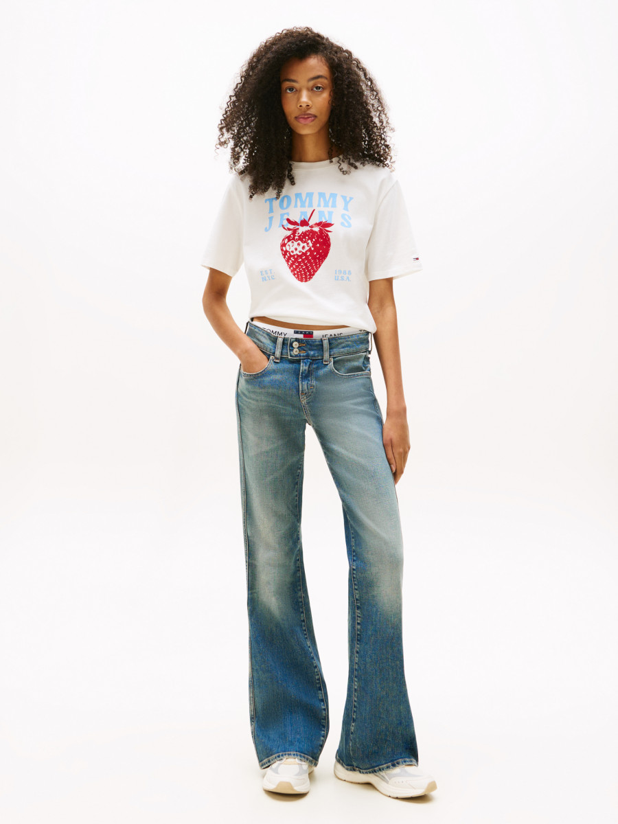 Das DW0DW20894/TJW RLX TJ STRAWBERRY TEE aus der Tommy Jeans Kollektion ist ein T-Shirt mit einem auffälligen und frischen Design. Es trägt das charakteristische RLX (Relaxed) Label, was für eine lockere Passform und hohen Komfort steht. Der Rundhalsausschnitt und die kurzen Ärmel machen das Shirt zu einem perfekten Alltagsbasic, das sich sowohl für entspannte Freizeitlooks als auch für sportlich inspirierte Outfits eignet.