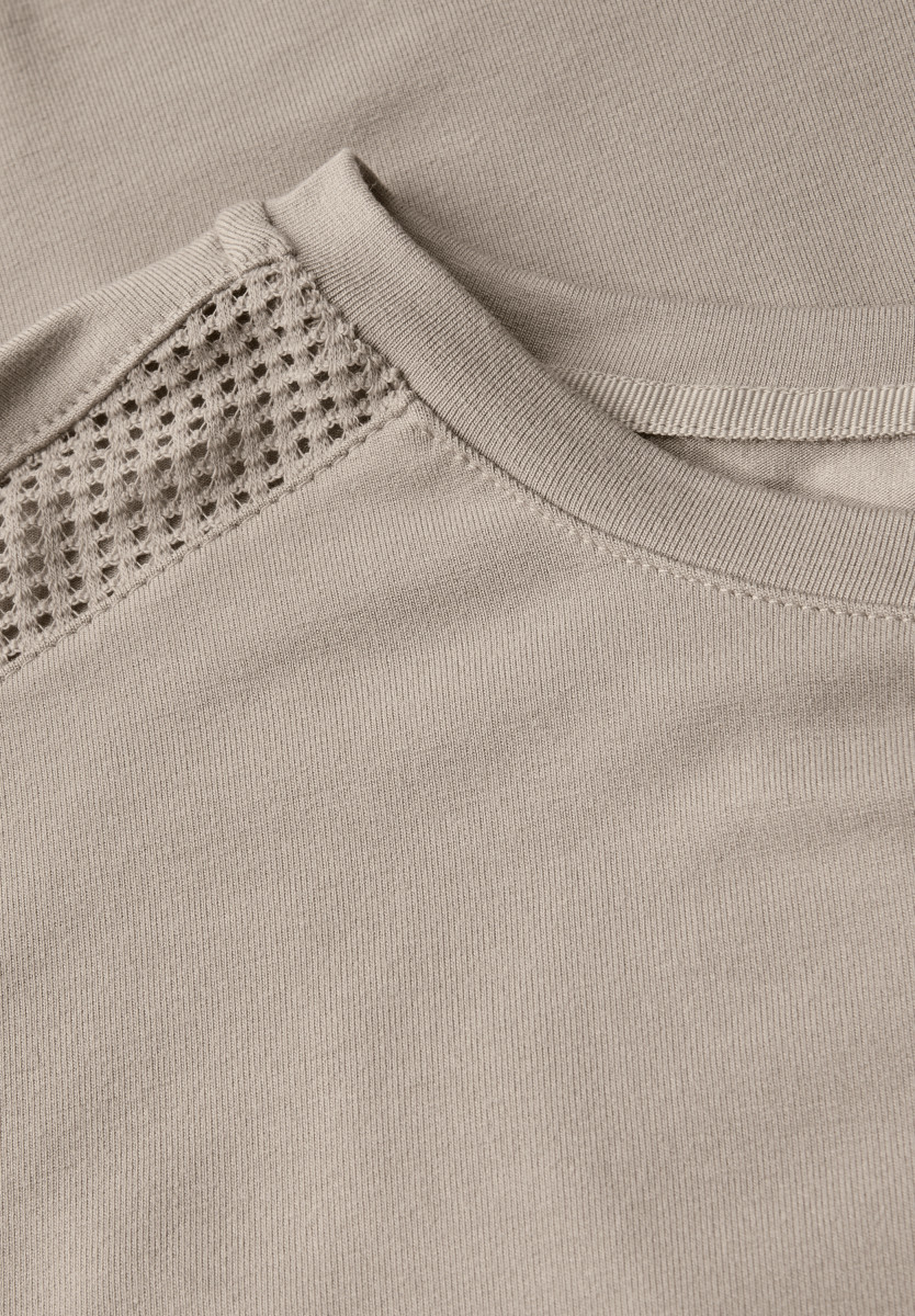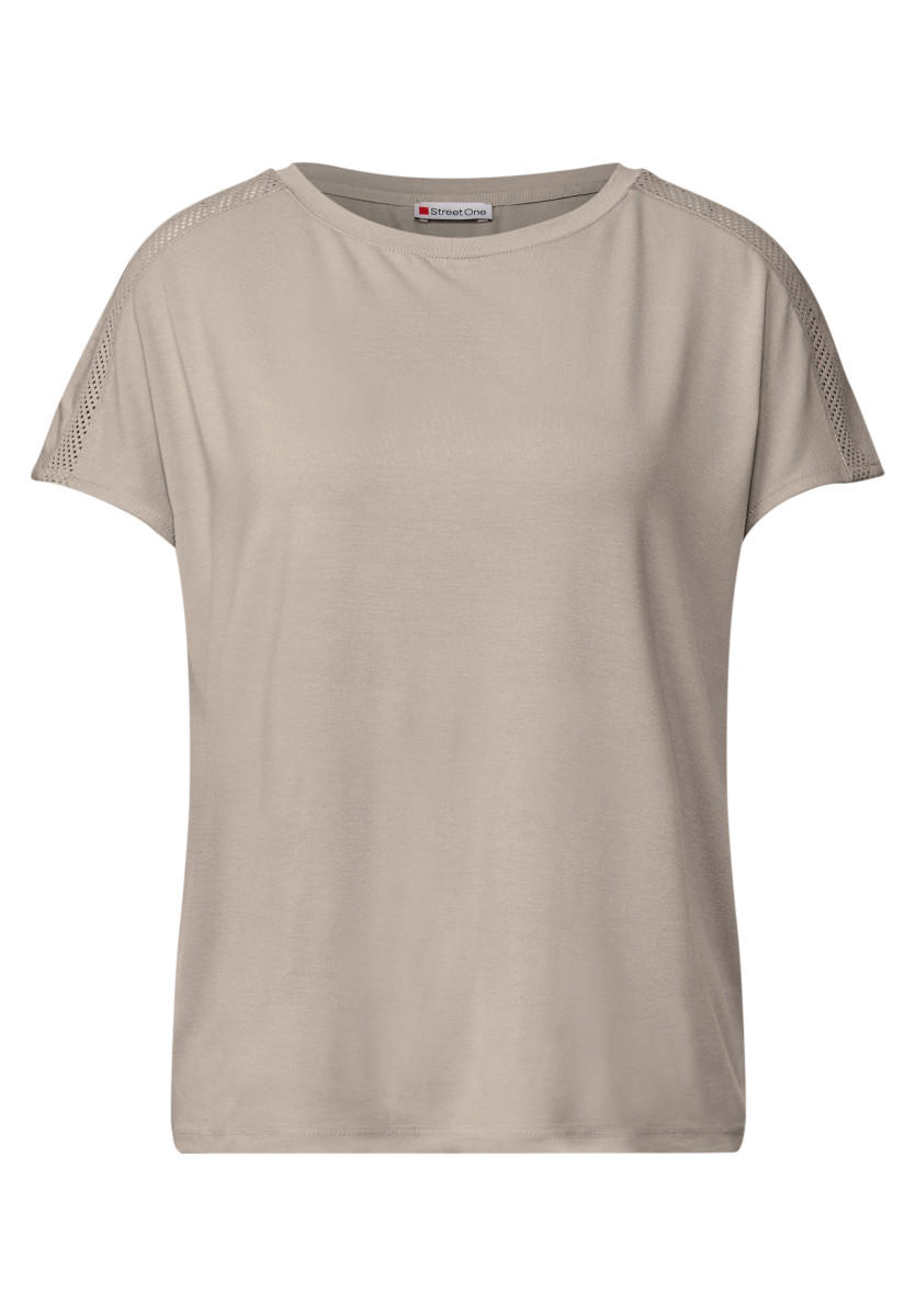 Das Jersey-Shirt von Street One für Damen setzt mit feinen Mesh-Details an den Schultern modische Akzente. U-Boot-Ausschnitt, softe Jersey-Qualität und dropped shoulders sorgen für ein bequemes Tragegefühl. Ein vielseitiges Shirt mit sportivem Touch – ideal für den Sommer. T-Shirt U-Boot-Ausschnitt Dropped Shoulders Mesh-Detail an den Schultern Softe Jersey-Qualität Material: 95% Viskose, 5% Elasthan