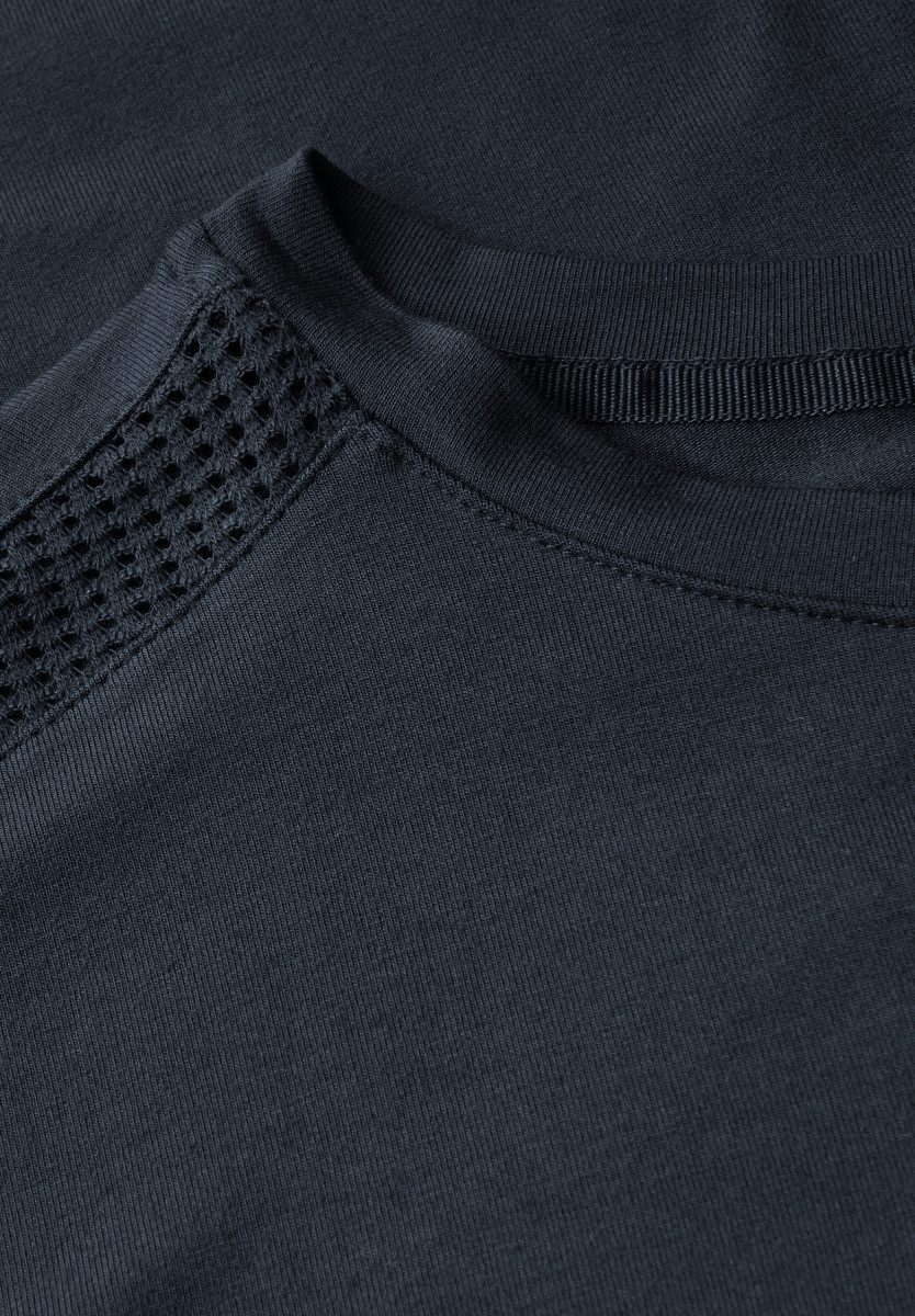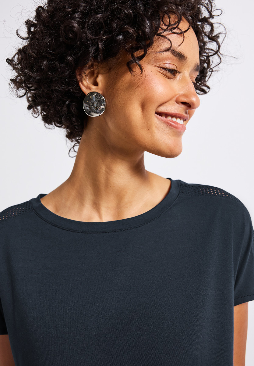 Das Jersey-Shirt von Street One für Damen setzt mit feinen Mesh-Details an den Schultern modische Akzente. U-Boot-Ausschnitt, softe Jersey-Qualität und dropped shoulders sorgen für ein bequemes Tragegefühl. Ein vielseitiges Shirt mit sportivem Touch – ideal für den Sommer. T-Shirt U-Boot-Ausschnitt Dropped Shoulders Mesh-Detail an den Schultern Softe Jersey-Qualität Material: 95% Viskose, 5% Elasthan