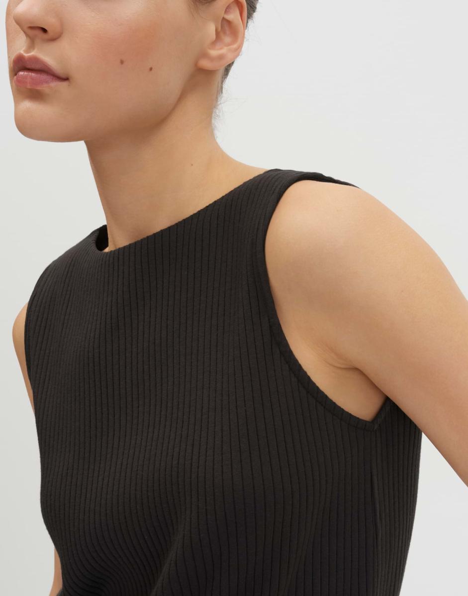 Sanft am Körper anliegend und angenehm weich auf der Haut wird das Top aus Baumwollgemisch schnell zum neuen Lieblingsteil. Die breite Jerseyrippe trifft auf einen femininen U-Boot Ausschnitt und schafft eine moderne Silhouette, die solo genauso überzeugt wie in durchdachten Layering Looks.