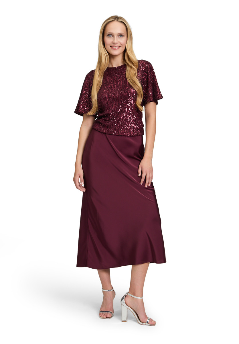 Figurbetonte Passform | Gesamtlänge: 58 cm | Länge ab Taille: 16 cm | Halbarm | Rundhals-Ausschnitt | Materialmix | Knopfschlinge hinten | Uni | Futter: 100% Polyester
