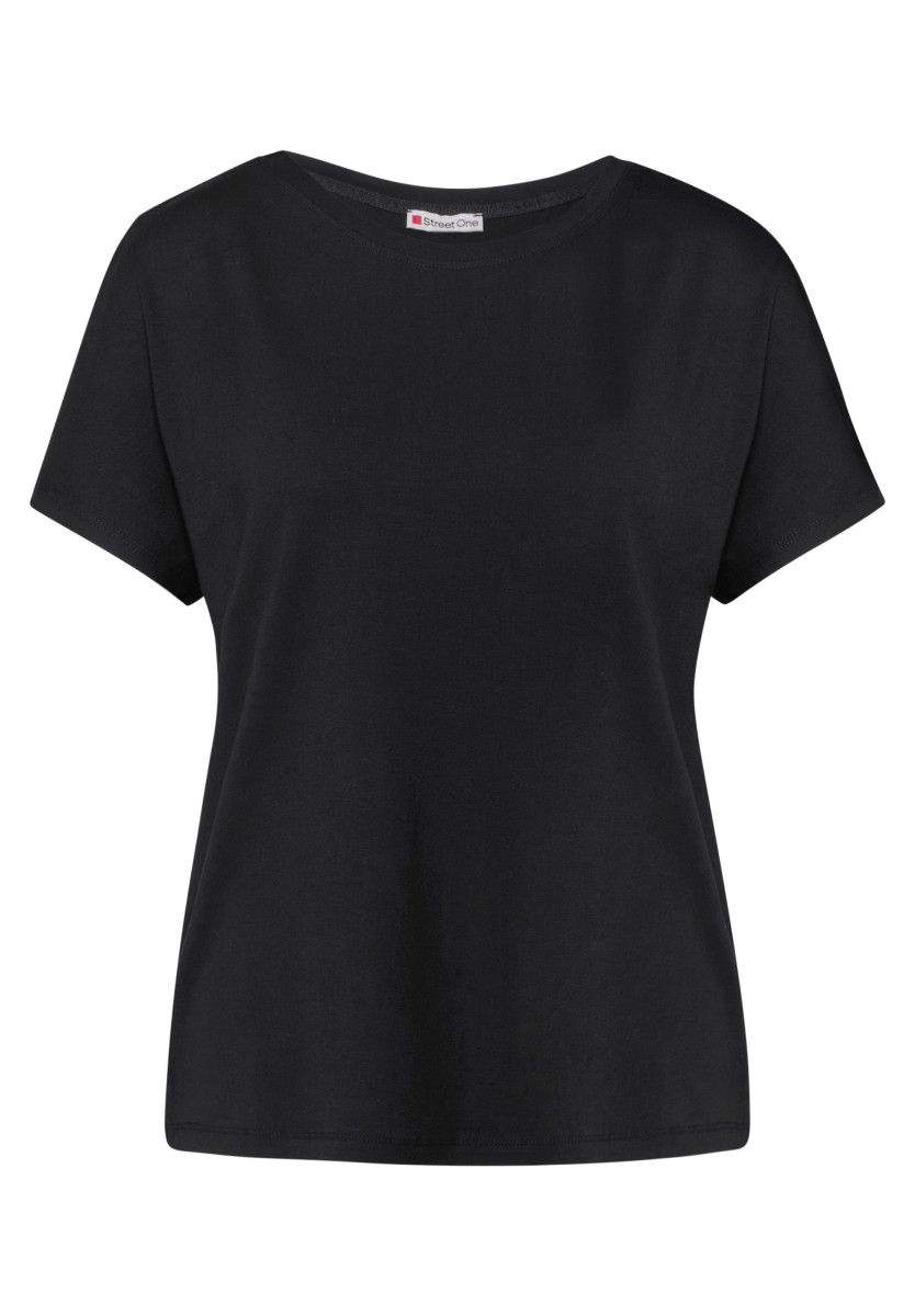 Dieses T-Shirt im Style Crista von Street One für Damen überzeugt mit seinem schlichten, aber modernen Look. Der Rundhalsausschnitt und die Dropped Shoulders verleihen dem Shirt eine entspannte Silhouette. Dank des weichen Viskosemixes mit Stretchanteil genießt du außerdem angenehmen Tragekomfort. T-Shirt Rundhalsausschnitt Dropped Shoulder Unifarbe Viskosemix mit Stretchanteil Material: 95% Viskose, 5% Elasthan