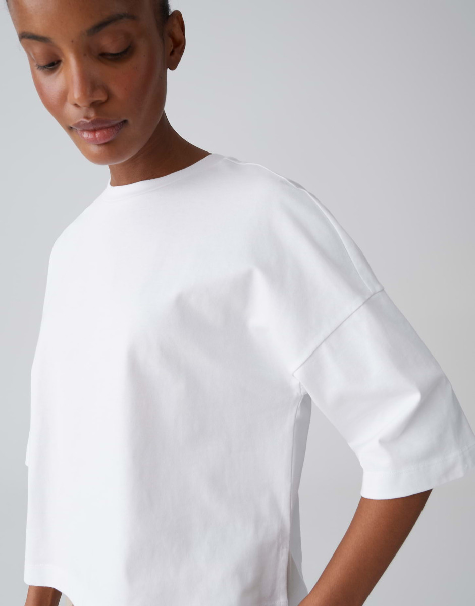 Das Sarenzi T-Shirt für Damen überzeugt mit einer oversized, boxy Passform und überschnittenen Schultern. Die verkürzte Länge und der klassische Rundhalsausschnitt sorgen für einen modernen, lässigen Look, seitliche Schlitze setzen zusätzliche Akzente. Der Jersey zeigt einen glatten Griff und wirkt formstabil, sodass das Teil einen sauberen Fall behält und sich vielseitig kombinieren lässt.Lief.-Art-Nr: 10537214001418
