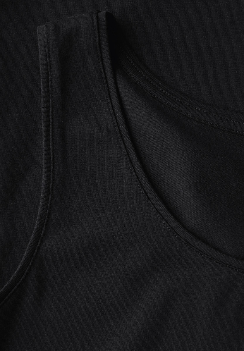 Das Basic Top im Style Anni von Street One für Damen ist ein zeitloser Klassiker mit Rundhalsausschnitt und in Unifarbe. Der Materialmix mit Stretchanteil garantiert dir angenehme Bewegungsfreiheit – ideal als Basic für deinen Kleiderschrank. Damentop Rundhalsausschnitt Ärmellos Unifarbe Materialmix mit Stretchanteil Material: 48% Baumwolle, 48% Modal, 4% Elasthan