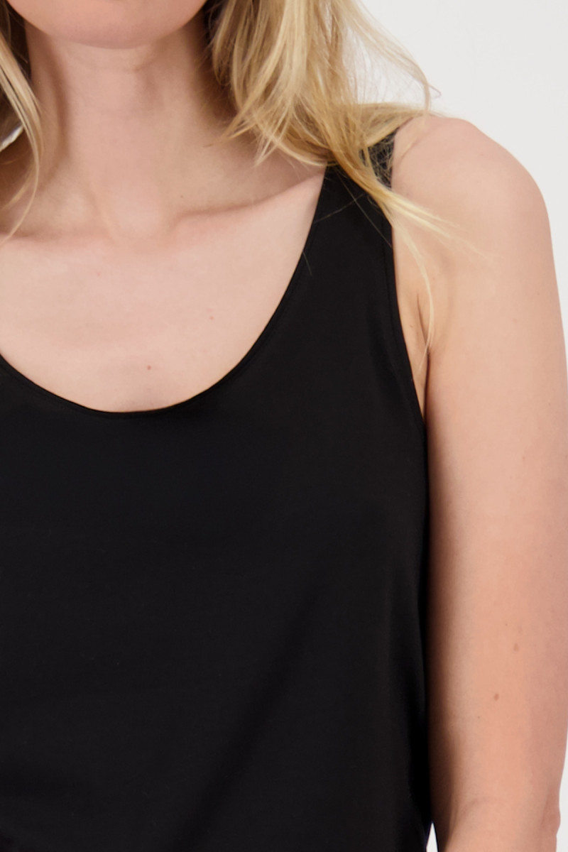 Top aus hochwertiger Baumwolle mit elastischem Material, leicht tailliert für eine feminine Passform. Rundhalsausschnitt und ärmellos für einen lässigen, modernen Stil.