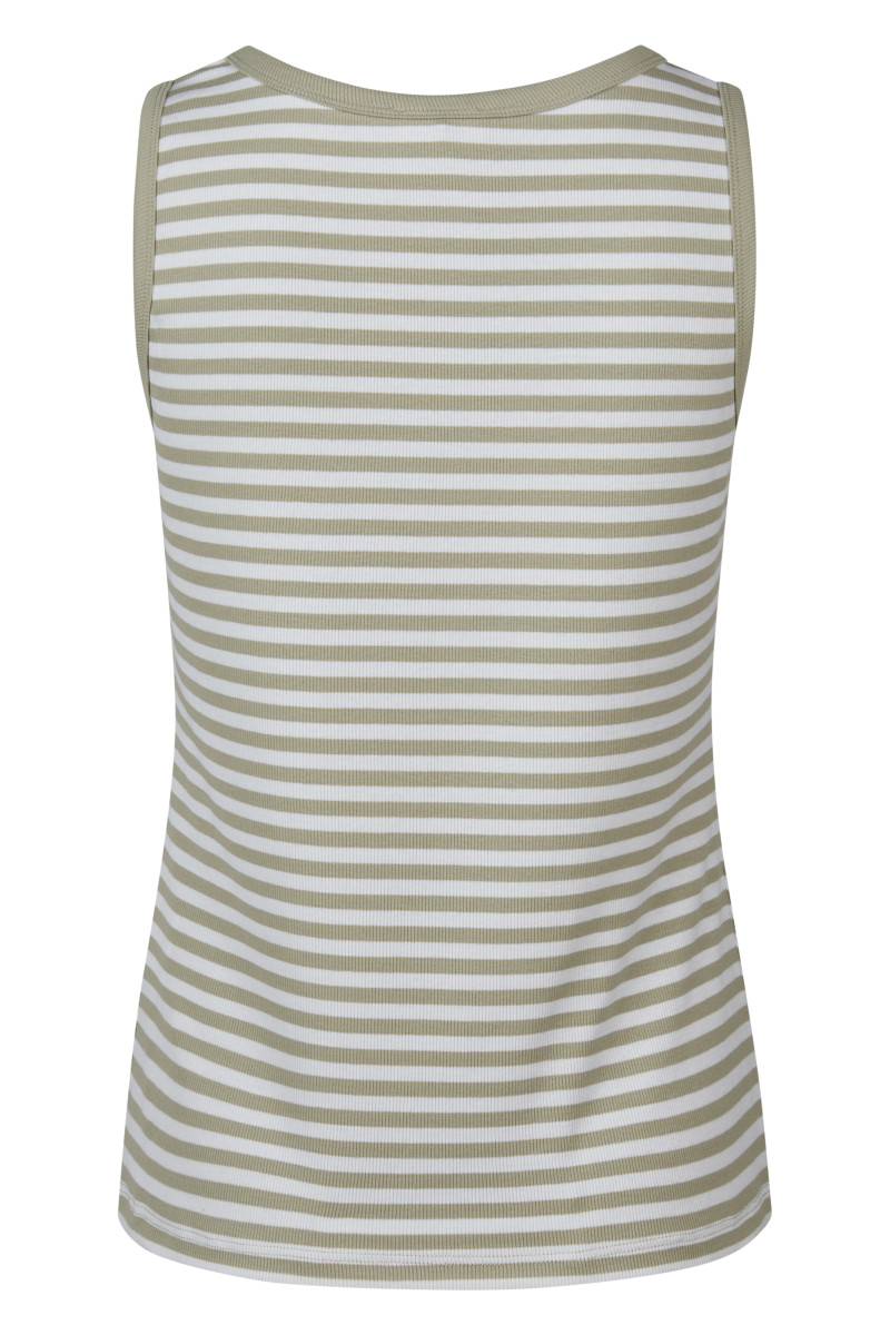 Tiefer Rundhalsausschnitt | Ohne Arm | Gestreift | Rippstruktur | Stretch