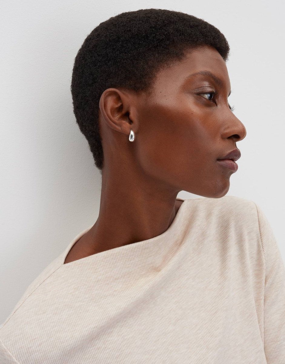 Die Abbildung zeigt die Rückseite eines schlichten, langärmeligen Oberteils in einem sanften, beigen Farbton. Das Material hat eine dezente Rippenstruktur, die dem Kleidungsstück eine feine Textur verleiht. Der Ausschnitt auf der Rückseite scheint gerade und relativ hoch zu sein. Das Design ist unkompliziert und minimalistisch, was das Oberteil zu einem vielseitigen Basic für verschiedene Outfits macht.