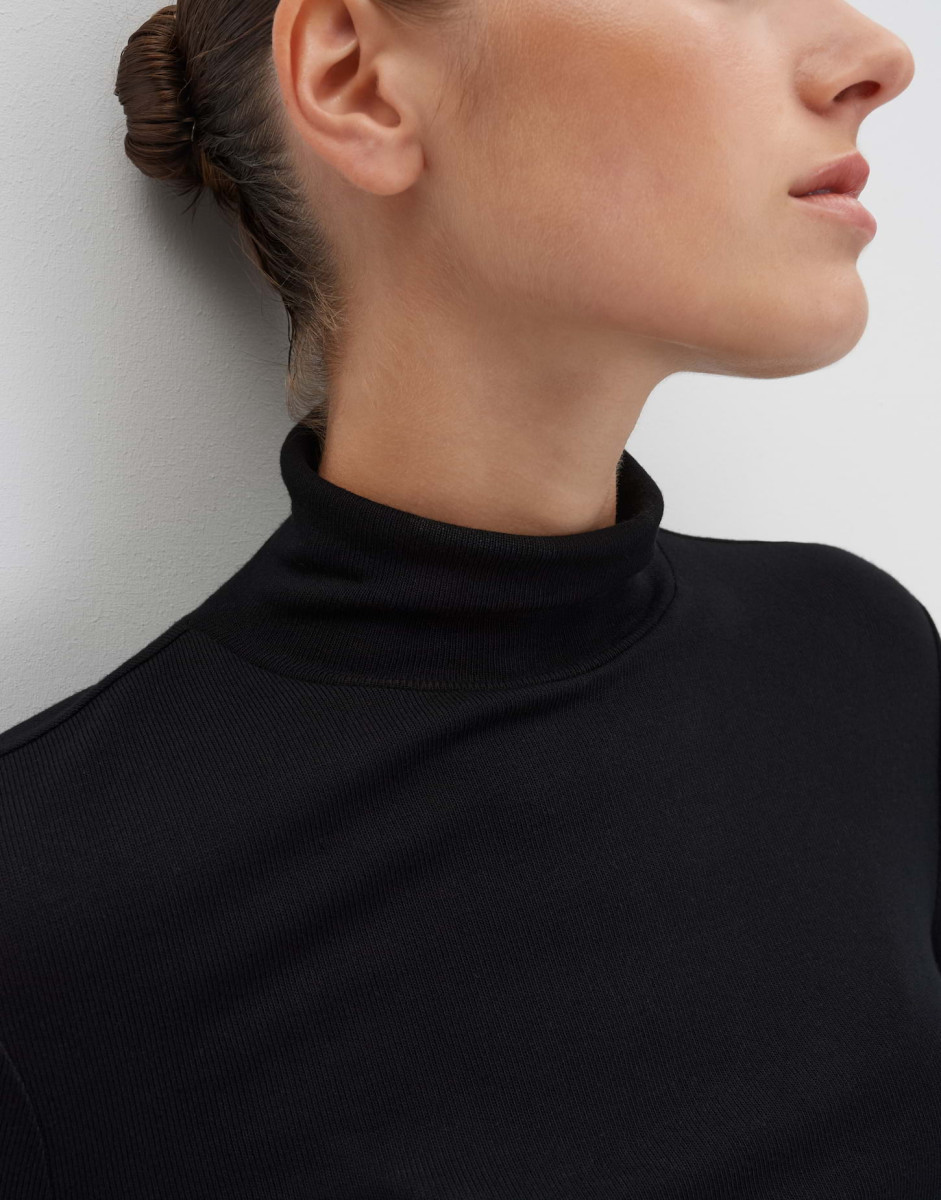 Dieses zeitlose Rollkragenshirt ist ein absolutes Essential für Ihre Garderobe. Das weiche, fließende Material in reinem Weiß sorgt für einen eleganten Fall und höchsten Tragekomfort. Der Rollkragen und die schmale, gerade Passform machen es zu einem vielseitigen Basic, das sich ideal für elegante Lagenlooks eignet. Ob unter einem Blazer, einem Pullover oder solo getragen, dieses Shirt verleiht jedem Outfit eine klassische und gepflegte Note.