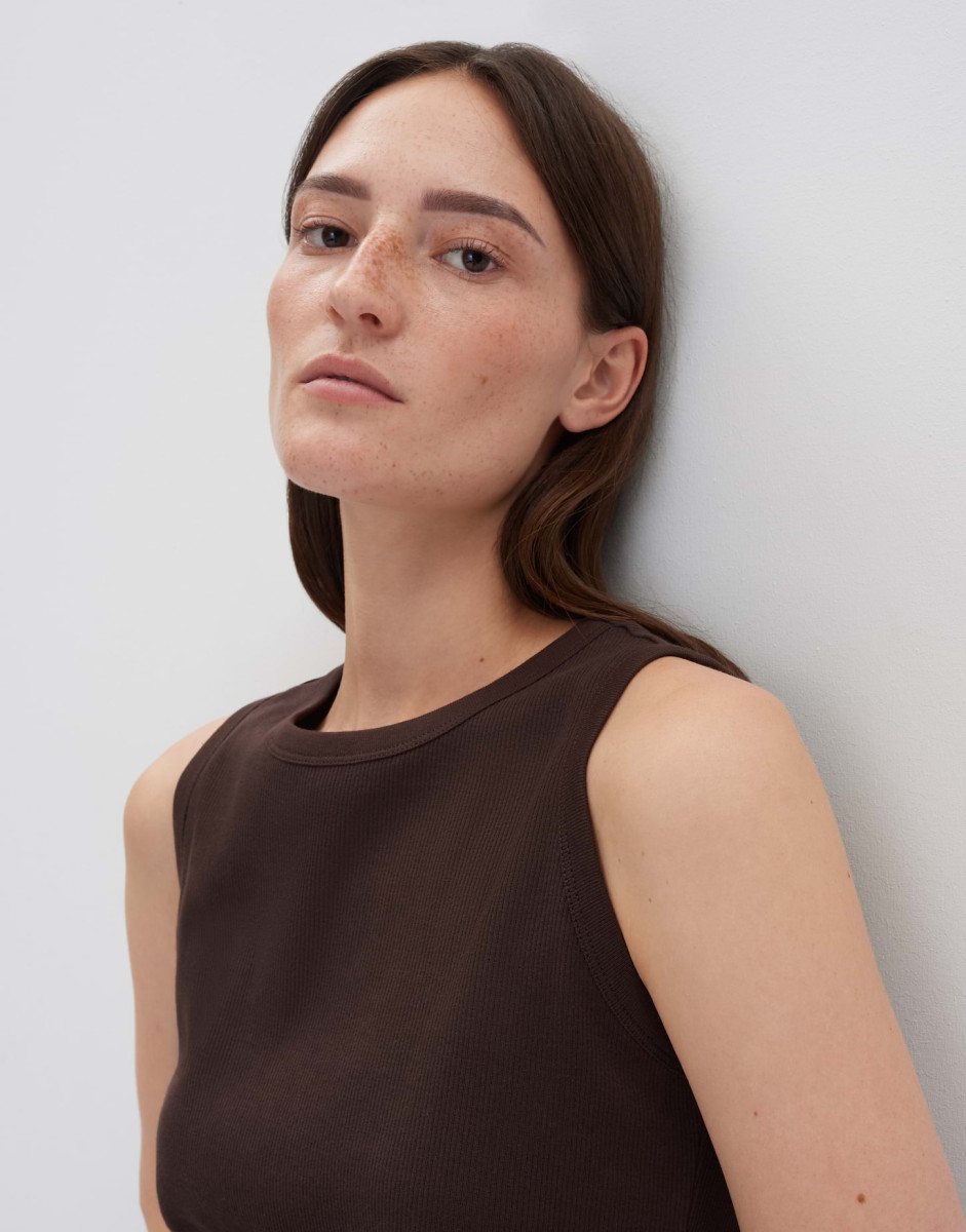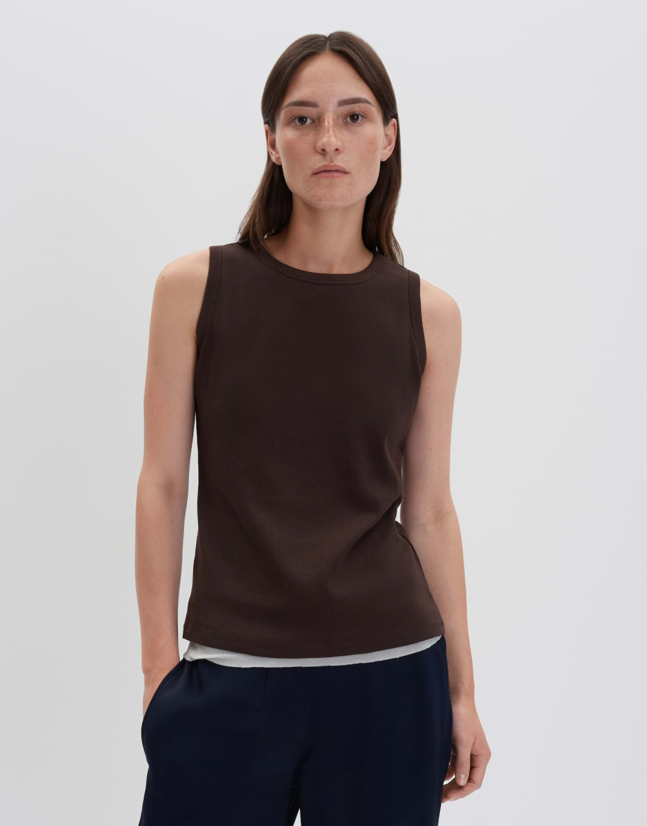 Das Tanktop aus einem BCI Cotton Mix ist super weich und hat eine hochsommerliche Anmutung. Der breite Träger lässt das nötigste darunter verschwinden.