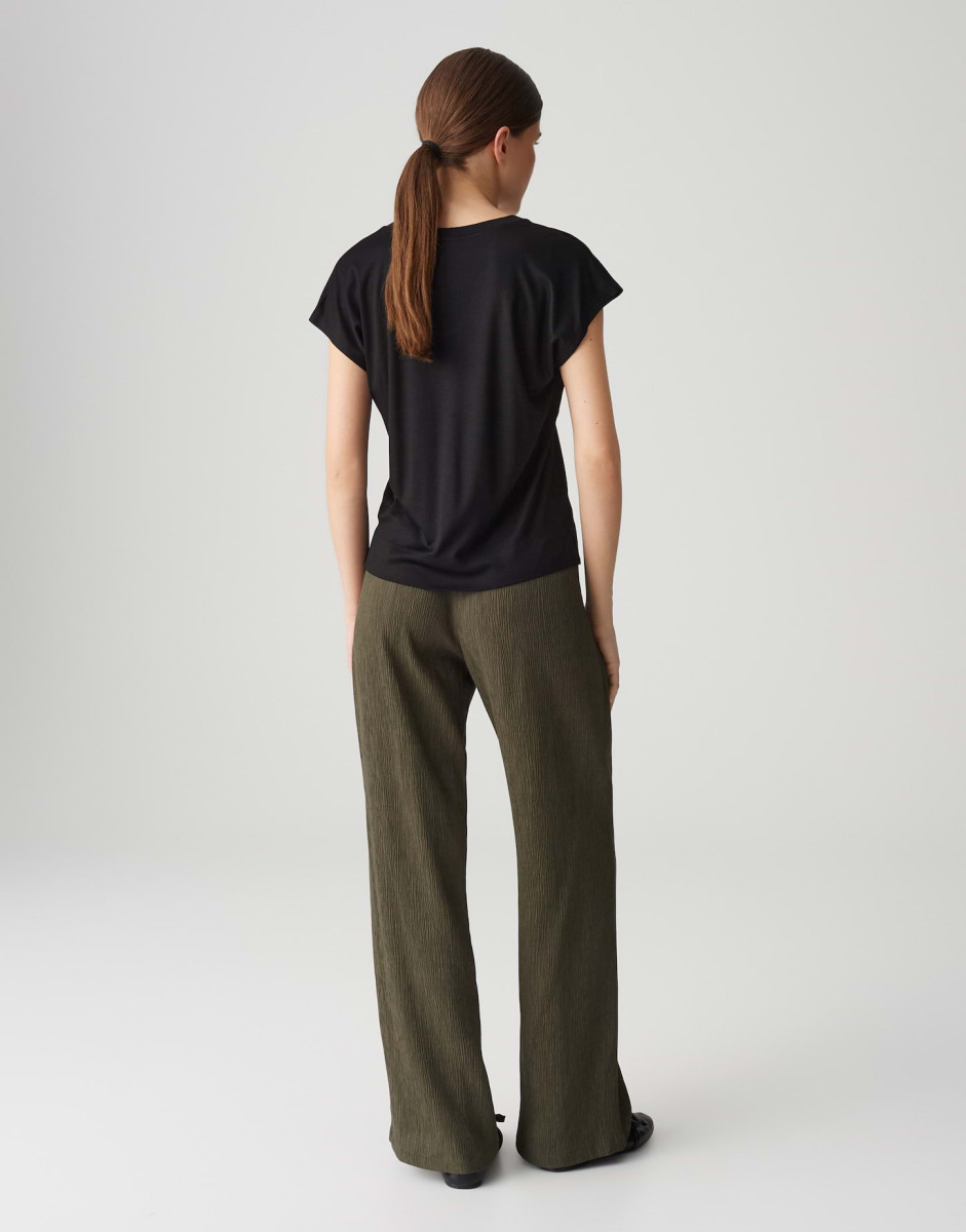 Lockere Passform | Gerader Schnitt | Überschnittener Kurzarm | V-Ausschnitt | Rückenlänge ca. 57 cm bei Größe 36 | Model Größe 177 cm – trägt Größe 36 | Jersey | Leichter Stoff | Weich fließender Fall | Kleine Schlitze in den Seiten | Rippbündchen am Halsloch