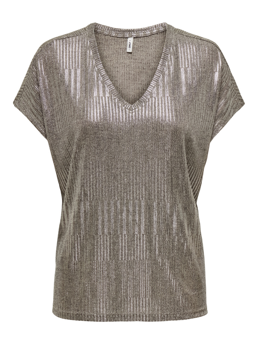 V-Ausschnitt | Kurzarm | Glitzer-Effekt | Normal geschnitten | Stretch