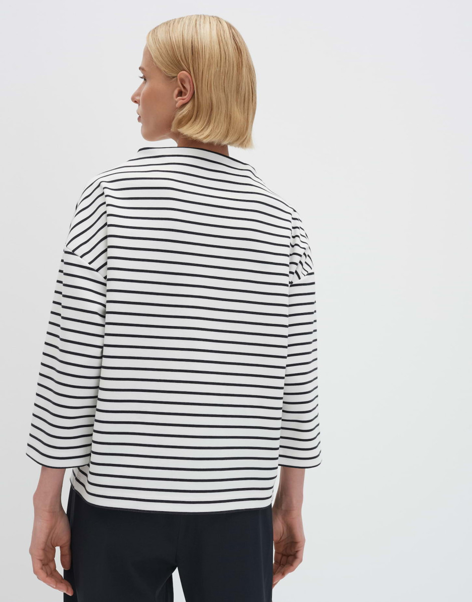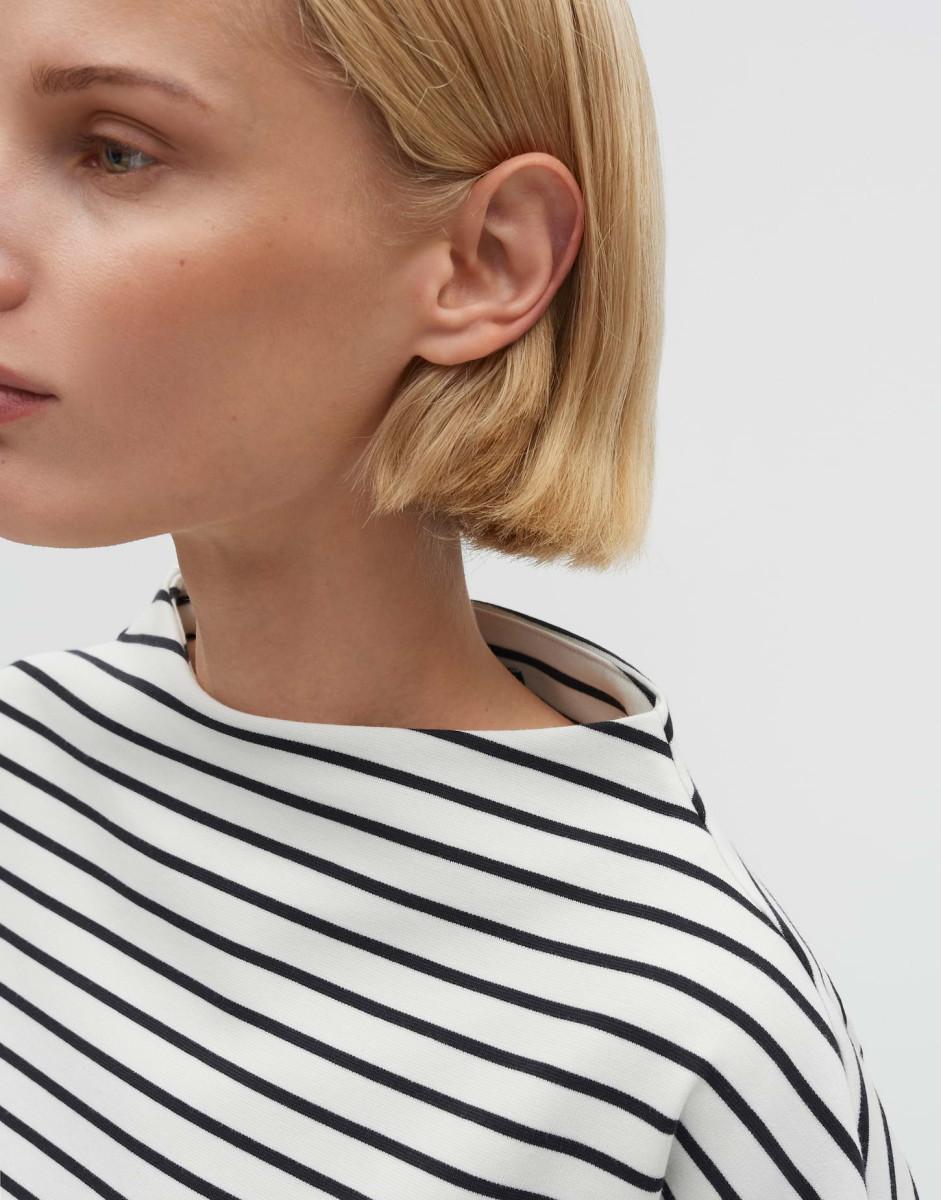 Das Top Kaleo überzeugt mit einer weiten, leicht ausgestellten Passform und überschnittener Schulter für einen entspannten Look. Funnel Neck und 3/4-Ärmel verleihen dem Oberteil eine moderne Silhouette, während der weiche Jersey-Griff für angenehmen Tragekomfort sorgt. Formstabil und pflegeleicht bleibt das Teil ein vielseitiges Basic, das sich unkompliziert kombinieren lässt.Lief.-Art-Nr: 10514613258106